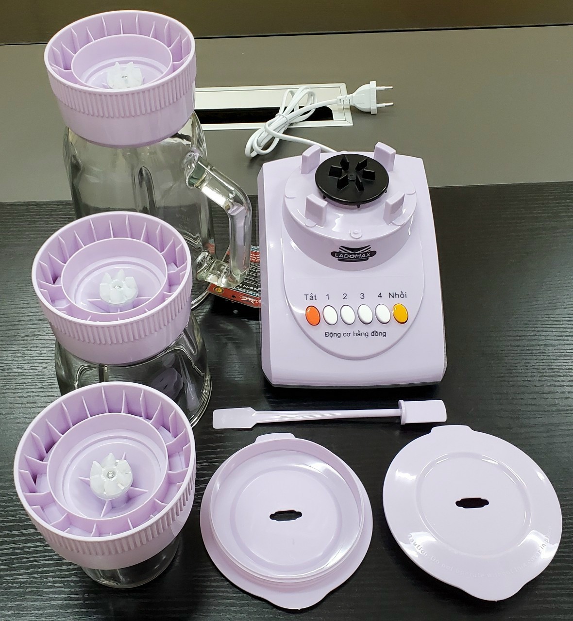 Sản phẩm trang bị 3 cối với khả năng xay sinh tố hoặc xay khô sẽ hỗ trợ bạn tốt hơn trong công việc bếp núc cũng như chế biến được nhiều thức uống khoái khẩu cho cả gia đình.