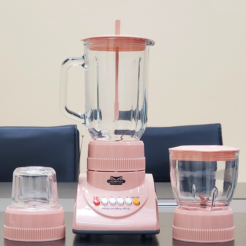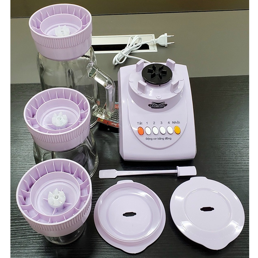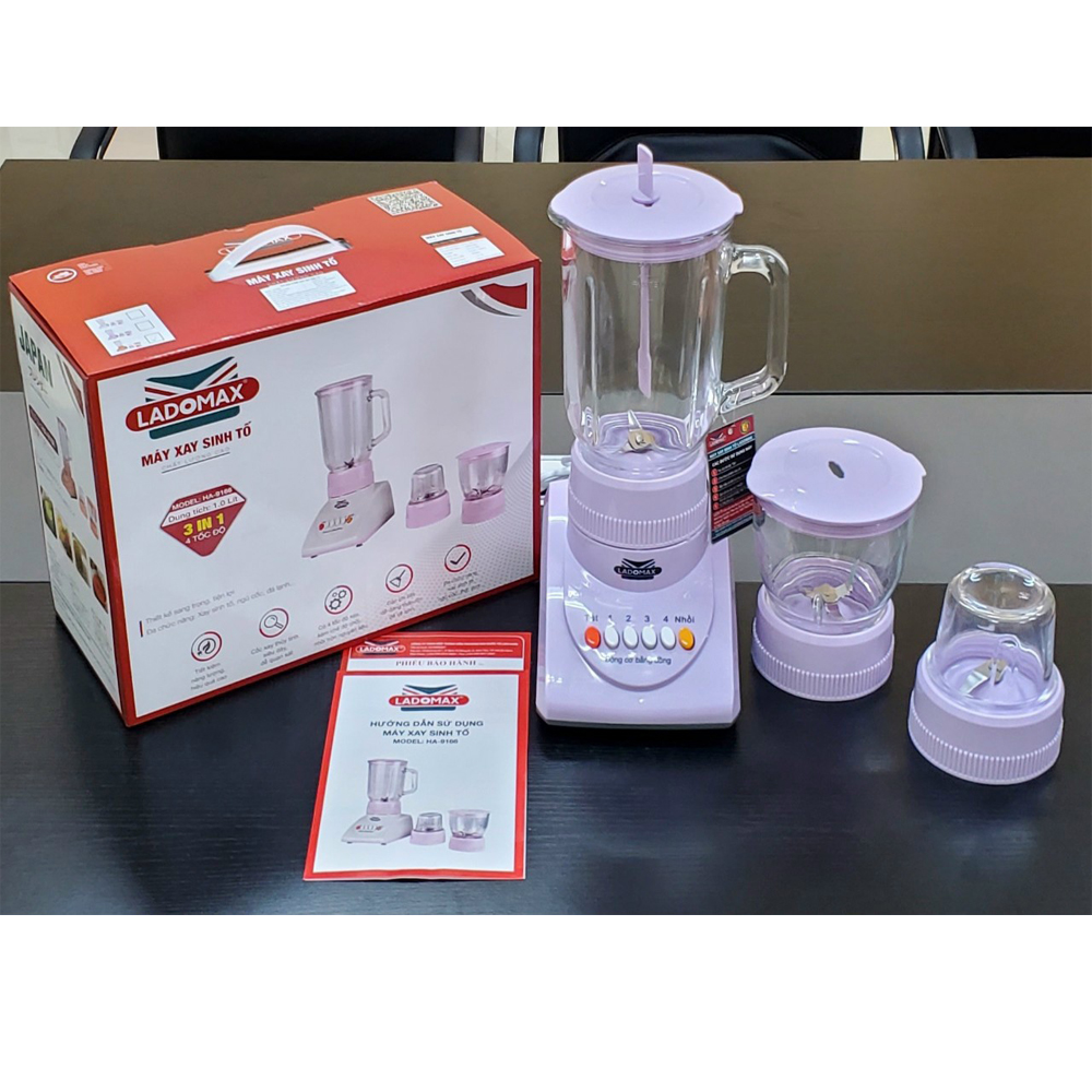 Máy xay sinh tố Ladomax HA-9166-3 với dung tích lớn 1.5 lít cùng 3 cối: xay sinh tố, xay thịt và xay khô bằng chất liệu thủy tinh trong suốt có thể quan sát bên trong cối khi máy chạy, cối bền chắc, an toàn, dễ dàng vệ sinh.