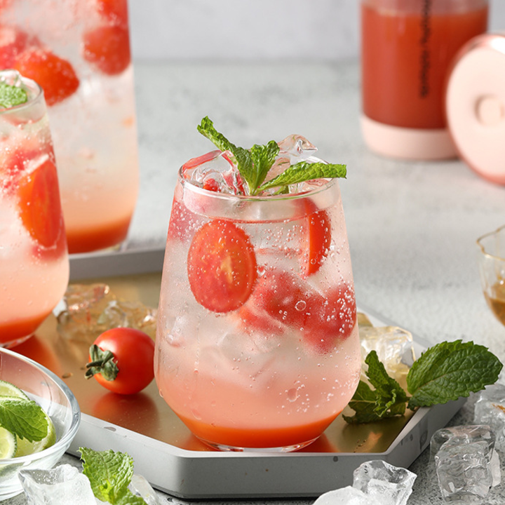 Mua tại Tiktok"* Nhỏ gọn với khối lượng 0.4kg, chỉ bằng 25 % so với máy ép bình thường, dung tích 350ml * Thiết kế cối xay kiêm bình nước di động, thuận tiện mang theo khi