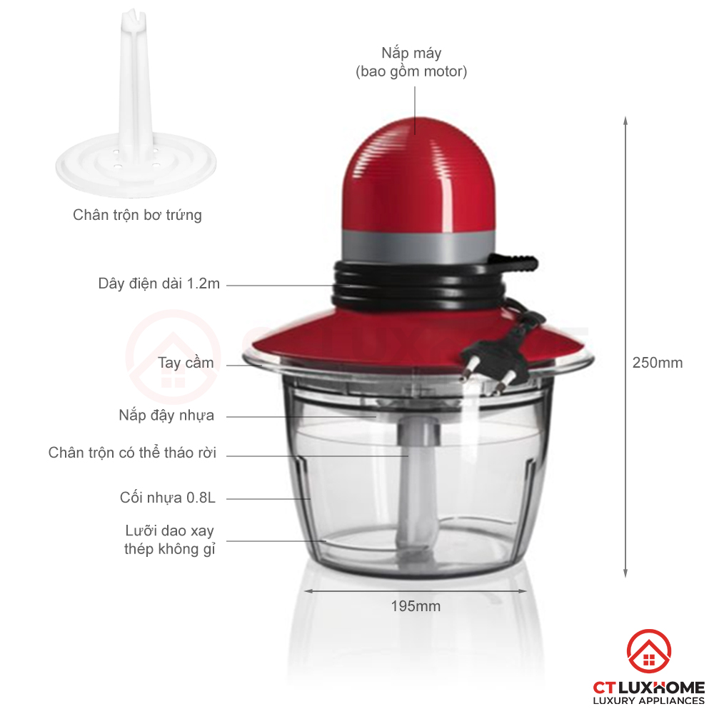 Công suất: 300 W - Chức năng chính: + Xay gia vị: Hành, tỏi, ớt, hạt ngũ cốc +Xay thịt - Cối xay: 1 cối xay thịt 2 L - Chất liệu cối chính: Cối