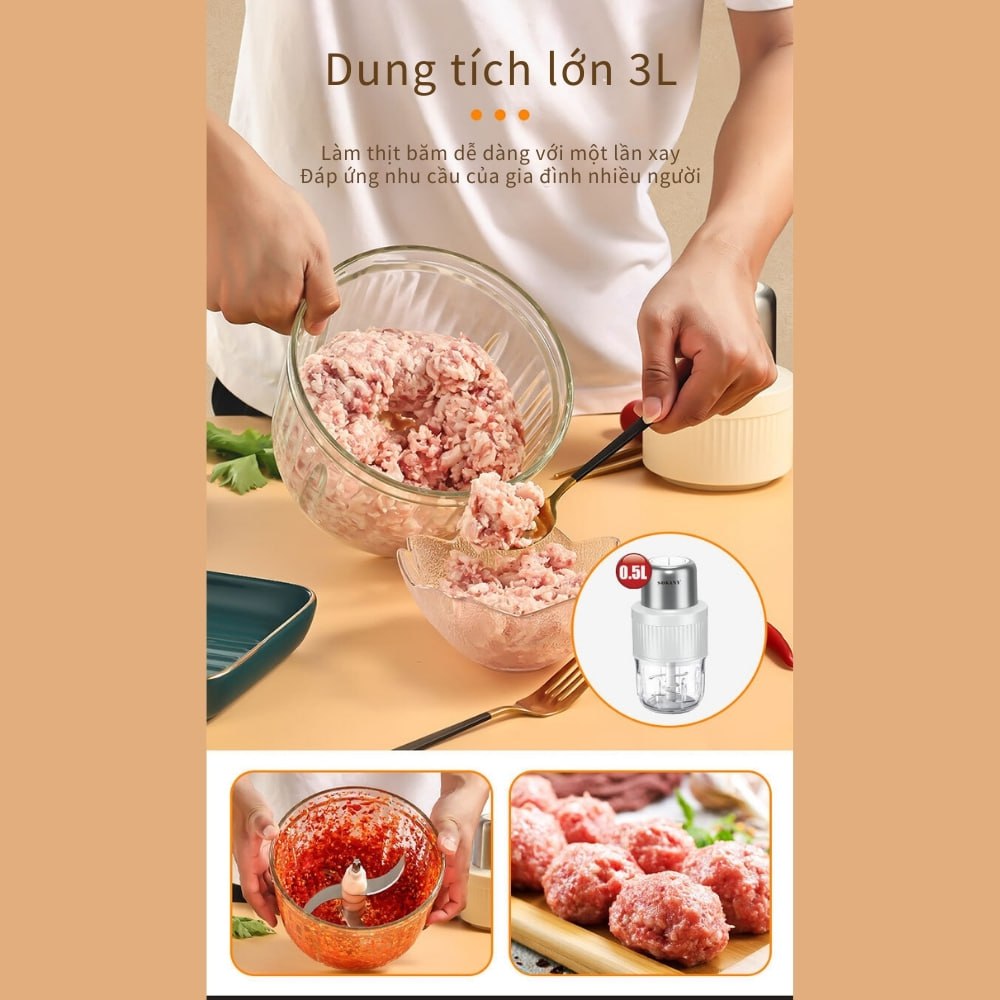 Máy xay thịt đa năng Mini nhỏ gọn - trợ thủ đắc lực cho mọi gia đình. MỖI GIA ĐÌNH PHẢI CÓ 01 CÁI - Công dụng: Xay thịt, cá , rau cũ, tiêu, tỏi,
