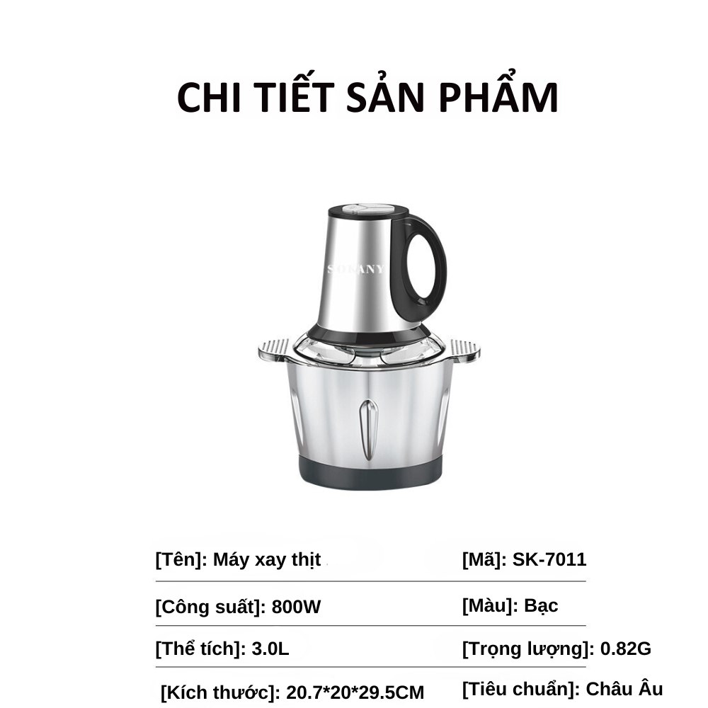 Máy xay thịt đa năng SOKANY SK-7011 Công suất cao 800W, dung tích lớn 3L, xay nhuyễn mọi thực phẩm, dễ dàng vệ sinh [BẢO HÀNH CHÍNH HÃNG 12 THÁNG - ĐỔI TRẢ TRONG 15
