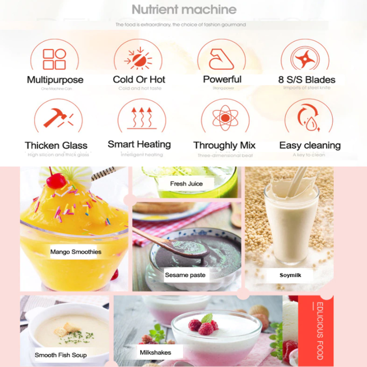 Máy Làm Sữa Hạt Đa Năng Máy làm sữa đậu nành chính hãng, 10 chức năng xay nấu với khả năng chống ồn