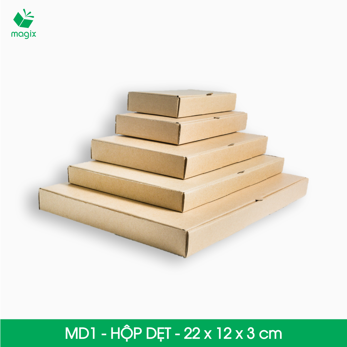 Sản phẩm: MD1 - Hộp dẹt 22x12x3 cm- Hộp giấy Carton đóng gói gửi hàng thu hộ COD Công dụng: Hộp giấy carton đóng gói các sản phẩm Hộp đựng cáp sạc, phụ kiện ốp