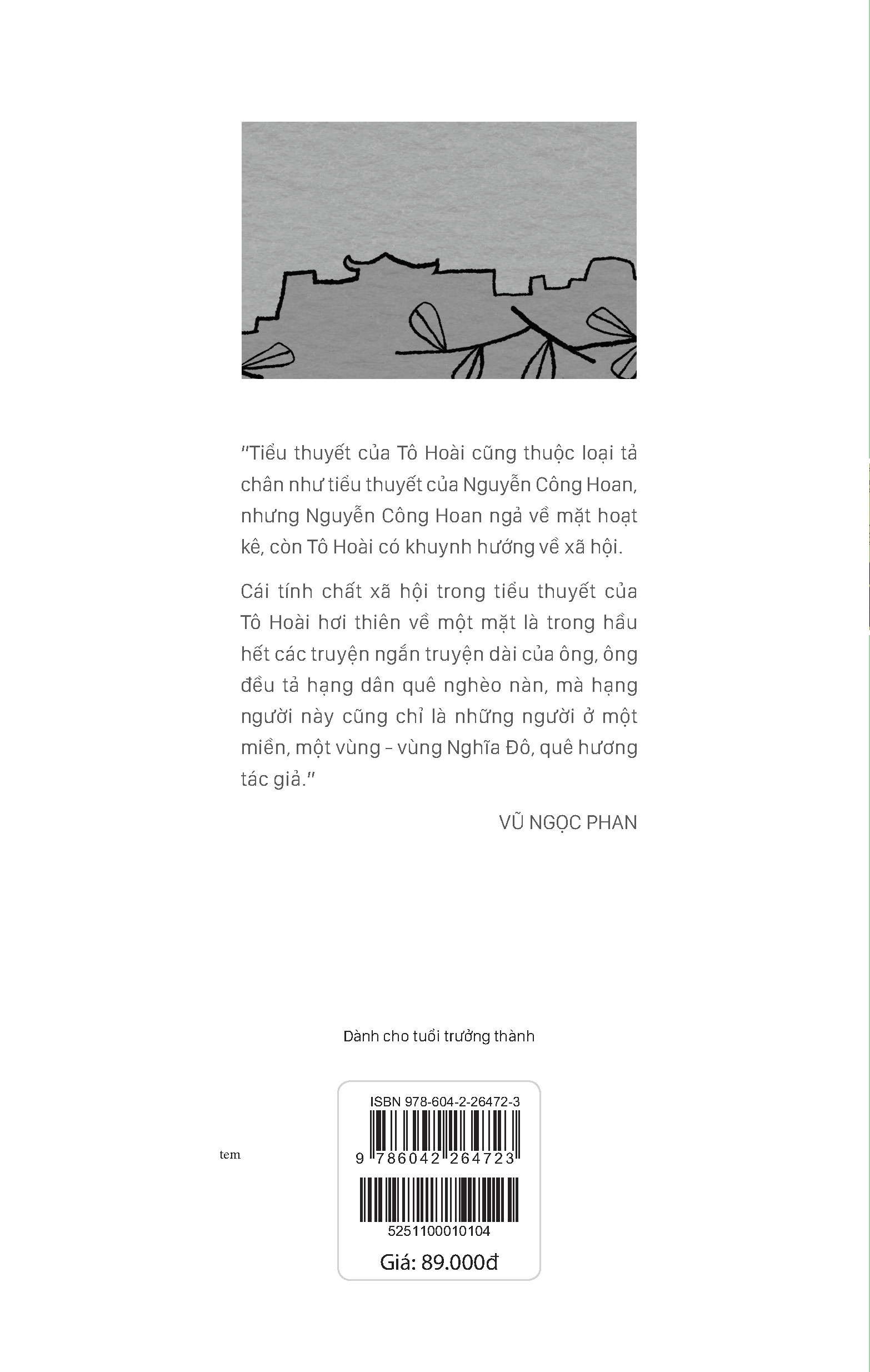Mua tại Tiktok“Tiểu thuyết của Tô Hoài cũng thuộc loại tả chân như tiểu thuyết của Nguyễn Công Hoan, nhưng Nguyễn Công Hoan ngả về mặt hoạt kê, còn Tô Hoài có khuynh hướng về xã hội. Cái tính chất xã hội trong tiểu thuyết của Tô Hoài hơi thiên về một mặt là trong hầu hết các truyện ngắn truyện dài của ông, ông đều tả hạng dân quê nghèo nàn, mà hạng người này cũng chỉ là những người ở một miền, một vùng - vùng Nghĩa Đô, quê hương tác giả.” - VŨ NGỌC PHAN