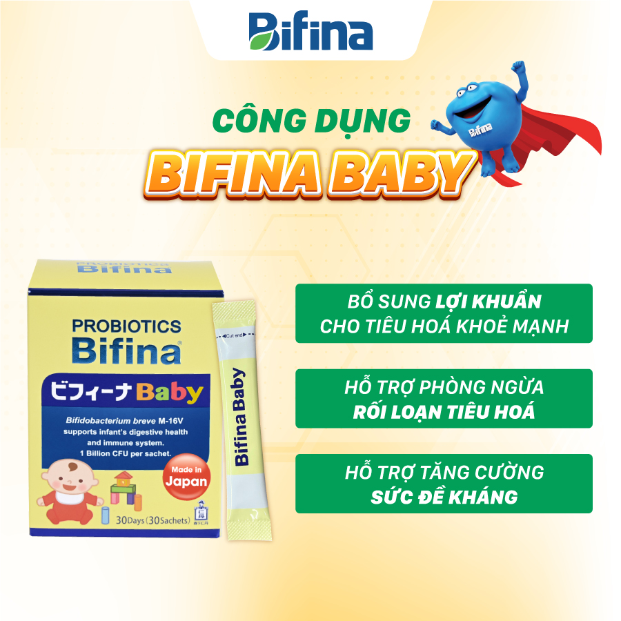 ✨Men vi sinh cho bé – Bifina Baby Nhật Bản – Tiêu hóa khoẻ, hỗ trợ giảm táo bón, tăng đề kháng -Hộp 30 gói