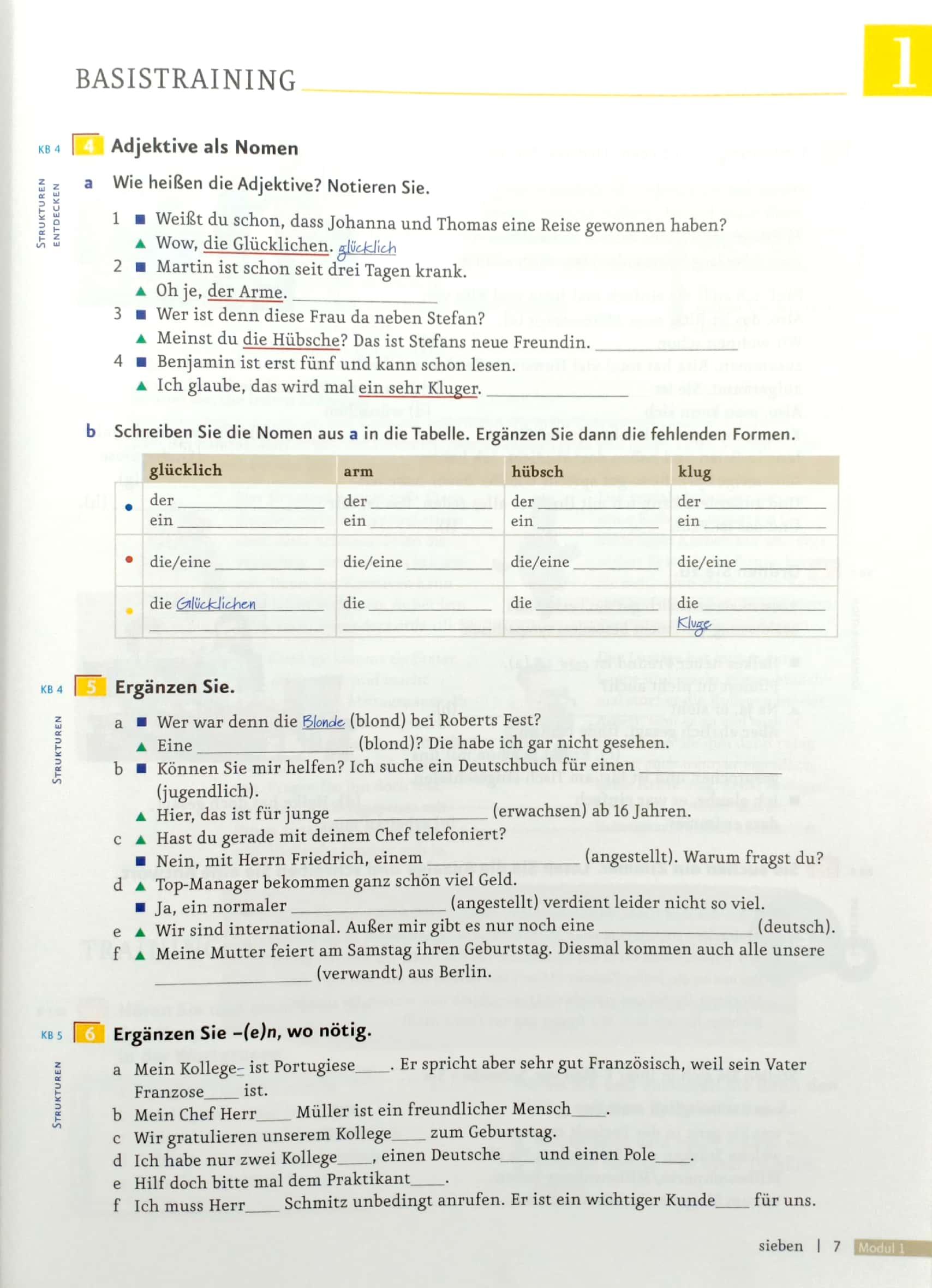 B1.1 MENSCHEN | LEKTION 1 | KURSBUCH | ADJEKTIVE ALS NOMEN