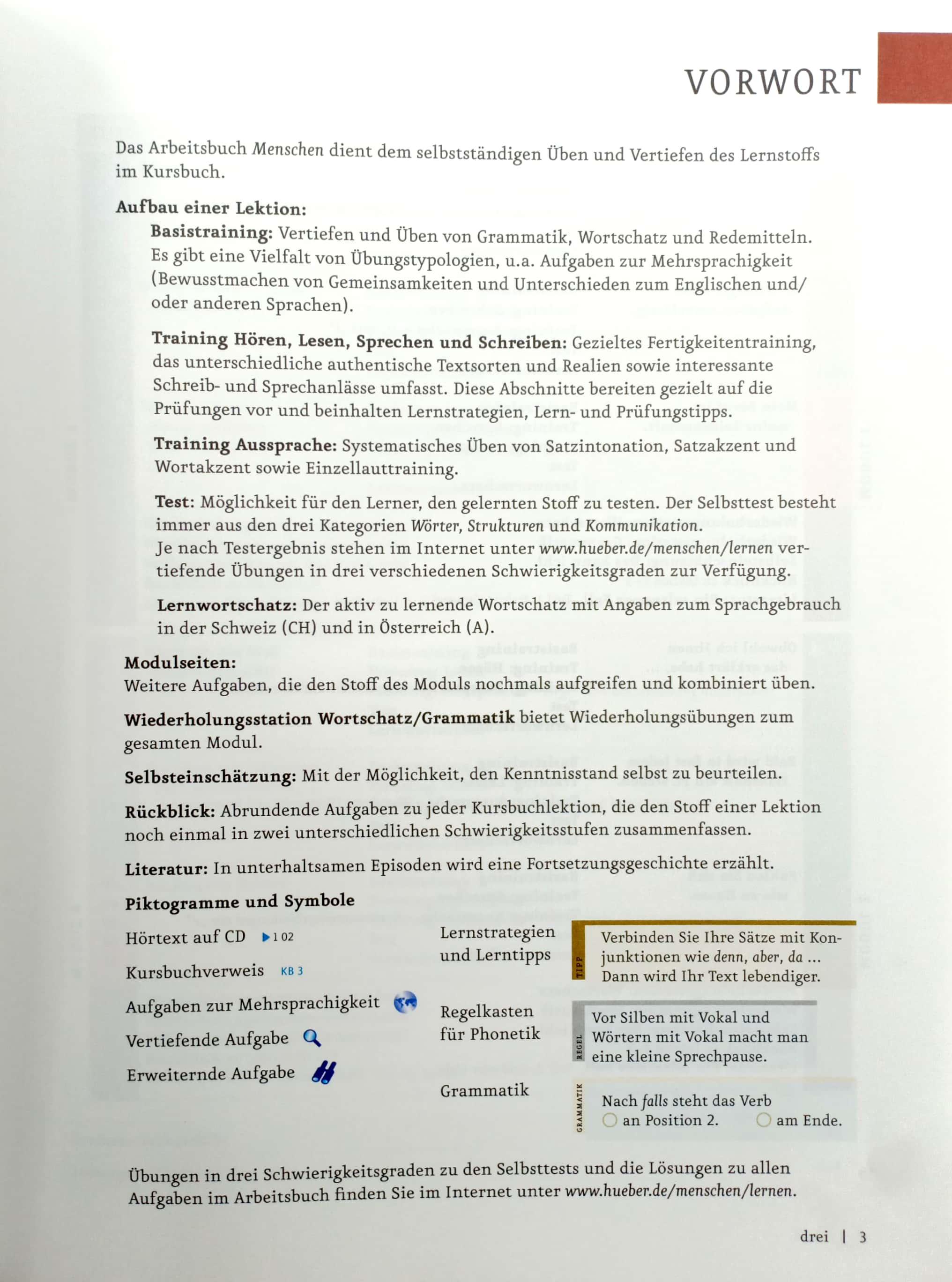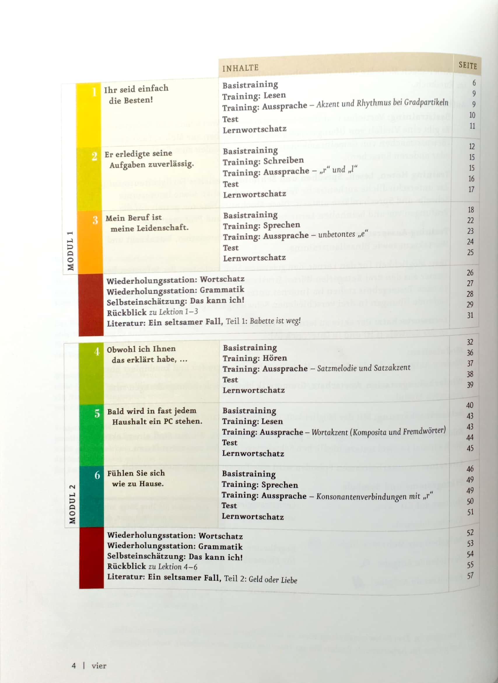 - zum selbstständigen Vertiefen von Grammatik, Wortschatz, Redemitteln - gezieltes Training der vier Fertigkeiten - Aussprachetraining, Selbsttests, Selbsteinschatzung und Lernwortschatz - Literaturseite mit einer interessanten Fortsetzungsgeschichte - Audio-CD mit Hörtexten zu den Aufgaben im Arbeitsbuch