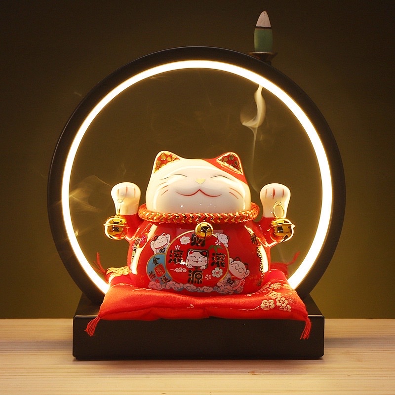 -Mèo thần tài lục lạc may mắn thu hút tài lộc , có khe để tiền , kèm đệm lót xinh xắn , đem nhiều may mắn đến cho gia chủ  -Xuất xứ : Trung