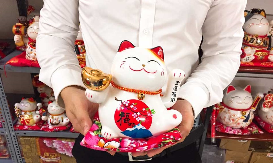 Mèo thần tài Maneki Neko Nhật Bản nổi tiếng là vật phẩm phong thủy mang lại may mắn và tài lộc. Mèo thần tài ôm bắp cải với ý nghĩa ôm của cải về cho gia chủ. Mèo vẫy tay thường được đặt trong cửa hàng để vẫy gọi khách hàng đến, thu hút tài lộc may mắn đến cho cửa hàng. Mèo thần tài vẫy tay – Tài Lộc Vô Biên sự lựa chọn số 1 cho món quà tặng khai trương cửa hàng.