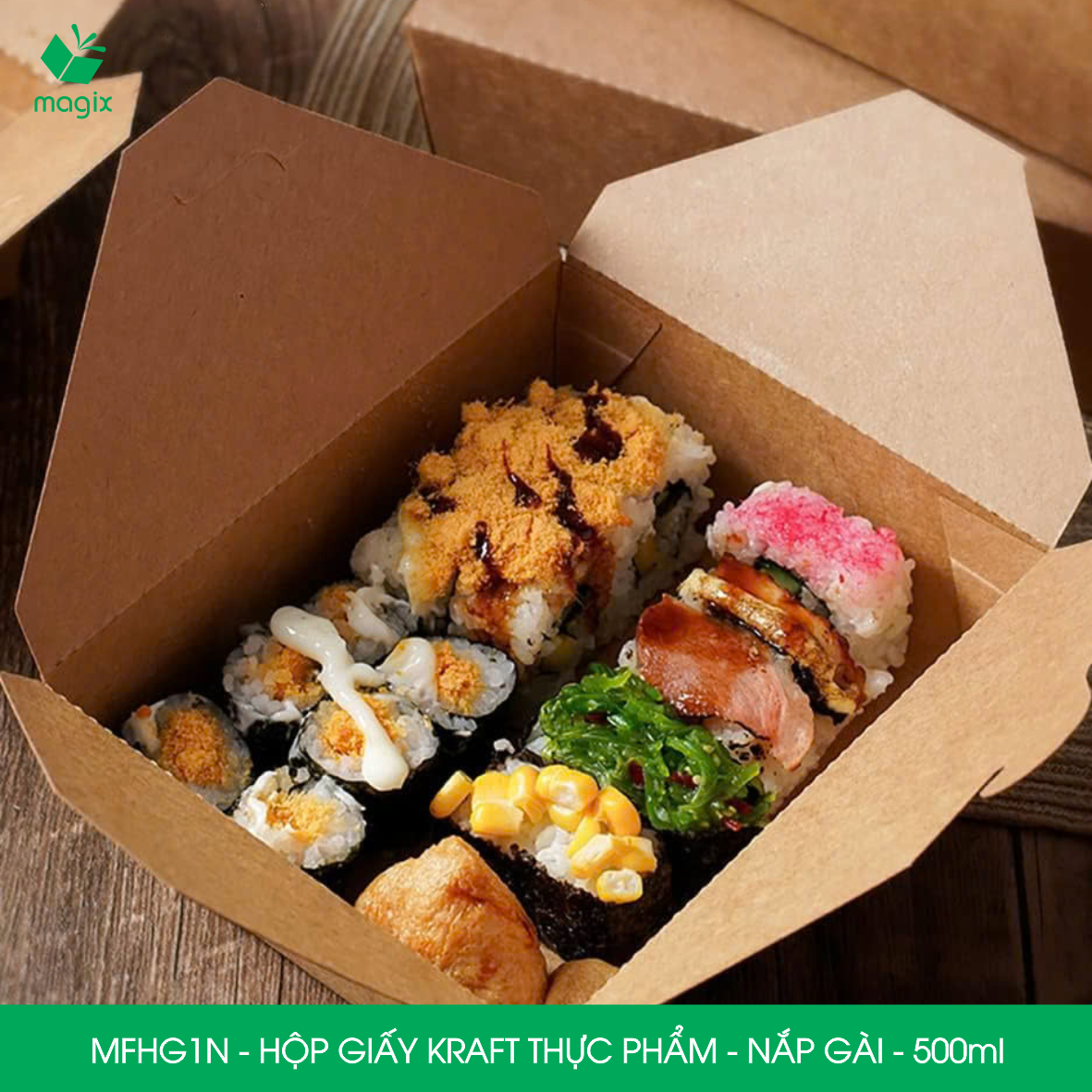 ✨MFHG1N - 25 hộp giấy kraft thực phẩm 500ml, hộp giấy nắp gập màu nâu đựng thức ăn, hộp giấy nắp gài gói đồ ăn mang đi