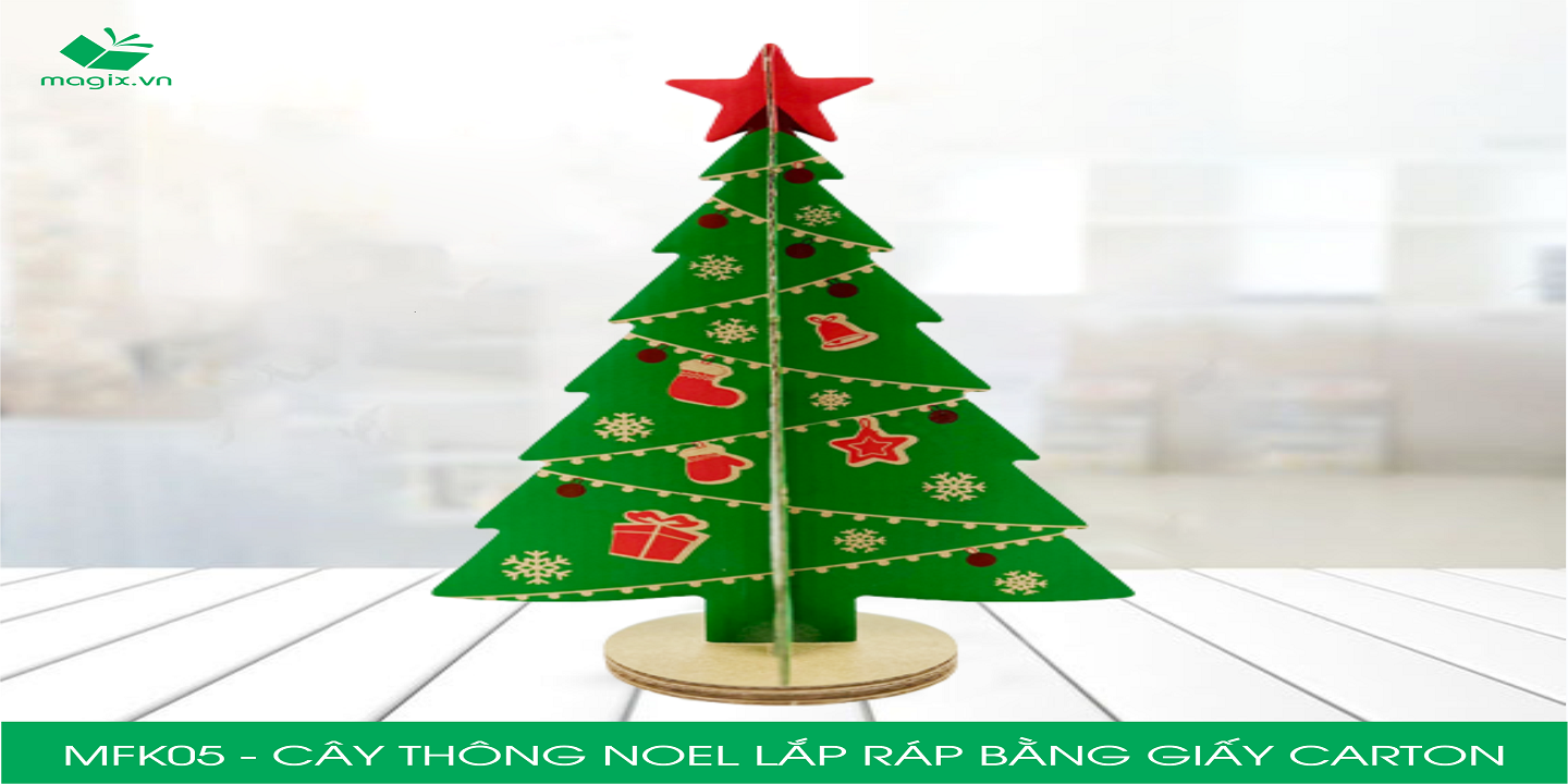 Cây thông Noel lắp ráp bằng giấy carton là một sản phẩm trang trí lý tưởng cho mùa Noel. Bạn có thể đặt sản phẩm trên bàn làm việc, ngăn tủ, kệ gỗ để trang trí. Với thiết kế đơn giản được in ấn cùng với sắc đỏ và xanh lá, sản phẩm sẽ giúp cho không gian làm việc/ trang trí của bạn đầy ấn tượng; hoặc bạn có thể dùng để làm quà tặng ý nghĩa cho các bé/ đồng nghiệp mùa Giáng sinh.