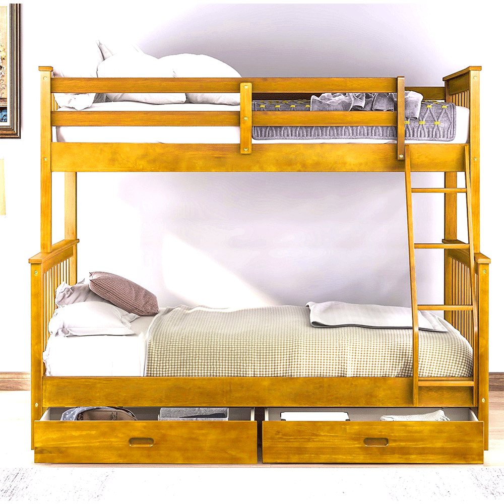 + Chất liệu: Khung giường gỗ thông Newzealand, phân tầng, Vách, đáy hộc gỗ công nghiệp, thang giường MDF chịu lực + Kích thước: kích thước phủ bì, tầng trên ưới 1mx2m Giường tầng hộp