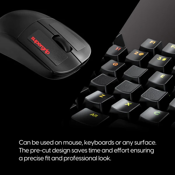 Grip tape hay còn gọi là miếng dán chống trượt là những miếng dán giúp tăng độ bám và tăng sự thoải mái khi chơi game, thường được cắt sẵn để vừa chuột của bạn. Chúng thường được làm từ vật liệu có tính chất cao su.