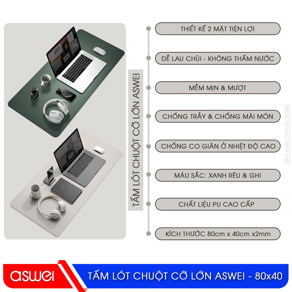 top 1 , top 1 bán chạy , bán chạy , bán chạy nhất , giá tốt , giá rẻ , giá rẻ nhất , phổ biến , phổ biến nhất , phù hợp , phù hợp nhất , top_seller , freeship , miễn phí vận chuyển , khuyến mại , giảm giá , ht sys , ht sys official store , thương hiệu ht sys , hàng chính hãng , gian hàng chính hãng , hà nội , hồ chí minh , HN , HCM , sale , giao hàng 2h , giao nhanh 24h , giao siêu tốc 2h , giảm sâu , giá thấp đến cao , hàng mới Lót Chuột ASWEI - Hàng Chính Hãng ASWEI Mouse Pad - Genuine Product Pad Chuột ASWEI - Hàng Chính Hãng Miếng Lót Chuột ASWEI - Hàng Chính Hãng Miếng Lót Chuột ASWEI - Chất Liệu PU Cao Cấp - Thiết Kế Sử Dụng 2 Mặt Tiện Lợi - Kích Thước 80x40 Và 90x45 - Hàng Chính Hãng Lót Chuột Gaming ASWEI - Hàng Chính Hãng Tấm Lót Chuột ASWEI - Hàng Chính Hãng Bàn Di Chuột - Miếng Lót Chuột - Hàng Chính Hãng Lót Chuột ASWEI - Miếng Lót Chuột Cỡ Lớn 80cmx40cm, 90cmx45cm- Tấm Lót Chuột, Pad Chuột ASWEI Sử Dụng 2 Mặt Tiện Lợi - Chất Liệu Da PU Cao Cấp - Thiết Kế Sang Trọng - Chống Nhăn, Chống Nước, Chống Bám Bụi - Hàng Chính Hãng Miếng Lót Chuột ASWEI - Tấm Lót Chuột Cỡ Lớn 2 Mặt 80cm x 40cm, 90cm x 45cm - Chất Liệu Da PU Cao Cấp - Tấm Lót Chuột Và Bàn Phím Chơi Game - Tấm Trải Bàn Làm Việc - Hàng Chính Hãng ASWEI Lót Chuột ASWEI - Pad Chuột ASWEI - Miếng Lót Chuột Cỡ Lớn 80x40 90x45 - Chất Liệu Da PU Cao Cấp - Tấm Lót Chuột Sử Dụng 2 Mặt Tiện Lợi - Chống Nước, Chống Nhăn, Chống Bám Bụi, Thiết Kế Sang Trọng - Hàng Chính Hãng Lót Chuột ASWEI - Pad Chuột ASWEI - Miếng Lót Chuột Cỡ Lớn 80x40 90x45 - Chất Liệu Da PU Cao Cấp - Tấm Lót Chuột Và Bàn Phím Chơi Game - Tấm Trải Bàn Làm Việc - Thiết Kế 2 Mặt Tiện Lợi - Hàng Chính Hãng ASWEI Miếng Lót Chuột Khổ Lớn Chất Liệu Da, Pad Chống Nước, Bàn Di Chuột ASWEI - Hàng Chính Hãng Miếng Lót Chuột Da PU ASWEI, Chống Thấm, Da Mềm, Siêu Mịn, Size 80x40 90x45 - Hàng Chính Hãng Tấm Lót Chuột, Thảm Da Trải Bàn Làm Việc ASWEI, Miếng Di Chuột Cỡ Lớn 40cmx80cm 45cmx90cm - Hàng Chính Hãng Miếng Lót Chuột Bằng Da Cao Cấp ASWEI - Hàng Chính Hãng Lót Chuột ASWEI - Pad Chuột ASWEI - Miếng Lót Chuột Cỡ Lớn 80cmx40cm Và 90cmx45cm - Chất Liệu Da PU Cao Cấp - Tấm Lót Chuột Sử Dụng 2 Mặt Tiện Lợi - Chống Nước, Chống Nhăn, Chống Bám Bụi, Thiết Kế Sang Trọng - Hàng Chính Hãng Lót chuột là một phụ kiện không thể thiếu đối với những người dùng máy tính, đặc biệt là các game thủ. Việc sử dụng lót chuột giúp tăng độ chính xác và độ nhạy của chuột, từ đó mang lại hiệu suất cao trong công việc và chơi game. Thương hiệu ASWEI đã cho ra đời những sản phẩm lót chuột chất lượng cao, đáp ứng được nhu cầu của người dùng. Trong bài viết này, chúng ta sẽ cùng tìm hiểu về lót chuột ASWEI A8040 80cm x 40cm và A9045 90cm x 40cm, những sản phẩm được đánh giá cao về thiết kế và sự thoải mái khi sử dụng. ASWEI - Thương hiệu Gaming Gear hàng đầu ASWEI là một thương hiệu nổi tiếng trong lĩnh vực phụ kiện máy tính và laptop, với những sản phẩm chất lượng cao và thiết kế đẹp mắt. Từ chuột gaming, bàn phím máy tính, tai nghe đến những tấm lót chuột hoàn hảo, ASWEI luôn được đánh giá cao về chất lượng và hiệu suất. Với sứ mệnh mang lại trải nghiệm tốt nhất cho người dùng, ASWEI không ngừng nghiên cứu và cải tiến sản phẩm của mình. Điều này đã giúp thương hiệu này trở thành một trong những lựa chọn hàng đầu của các game thủ và người dùng máy tính. Chất liệu da PU cao cấp, bền bỉ Một trong những yếu tố quan trọng khi lựa chọn lót chuột là chất liệu. Và lót chuột ASWEI được làm từ chất liệu da PU cao cấp, mang lại sự bền bỉ và chắc chắn cho sản phẩm. Độ dày của tấm lót chuột ASWEI lên đến 3mm, tạo cảm giác chắc chắn và độ bền lâu dài. Lớp bọt cao su bên trong mềm mại, giúp giảm áp lực lên tay khi sử dụng và đồng thời có khả năng chịu lực tốt, đảm bảo sự ổn định khi di chuyển chuột. Bề mặt vải mềm mại, chính xác Bề mặt pad chuột ASWEI được làm từ vải mềm siêu nhỏ, mang lại cảm giác mịn màng và chính xác khi thao tác chuột. Nhờ đó, bạn có thể di chuyển chuột nhanh và dễ dàng hơn, hỗ trợ tăng năng suất làm việc và chơi game. Đặc biệt, bề mặt vải của pad chuột ASWEI cũng có khả năng chống bám bụi, giúp sản phẩm luôn sạch sẽ và dễ dàng vệ sinh. Điều này rất quan trọng đối với người dùng máy tính, đặc biệt là các game thủ, vì việc bám bụi có thể làm giảm độ nhạy của chuột và ảnh hưởng đến hiệu suất chơi game. Công nghệ chống trơn trượt, chống nhăn, chịu nhiệt Miếng lót chuột ASWEI được trang bị công nghệ chống trơn trượt, cố định chắc chắn trên mặt bàn trong suốt quá trình sử dụng, tránh tình trạng lót chuột bị dịch chuyển ngoài ý muốn. Điều này giúp người dùng có thể tập trung vào công việc hoặc trò chơi mà không cần lo lắng về việc chuột bị trượt hay di chuyển. Ngoài ra, miếng lót chuột ASWEI cũng có khả năng chống nhăn và c