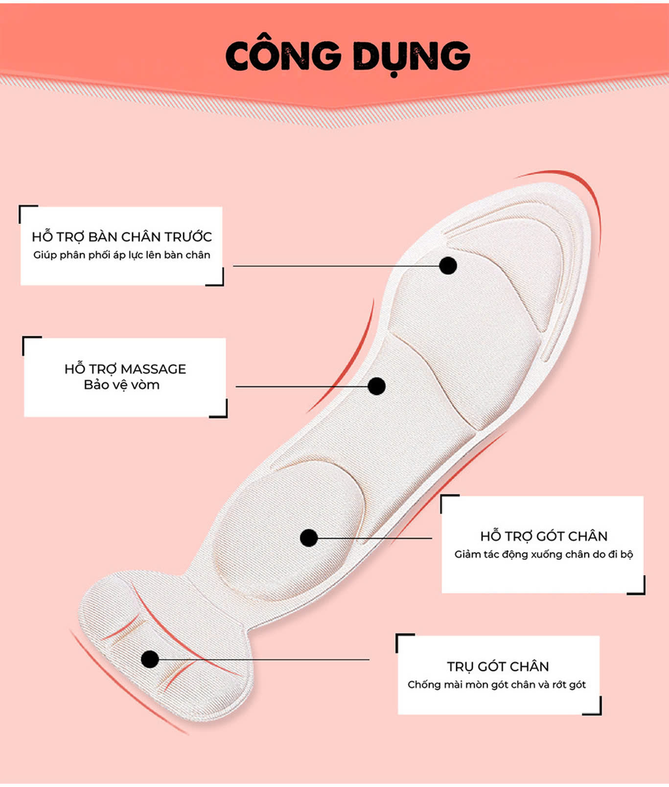 - Chức năng: bảo vệ bàn chân, chống đau chân khi đi lại nhiều