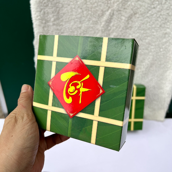 Bánh chưng: 13cm x 5cm.
