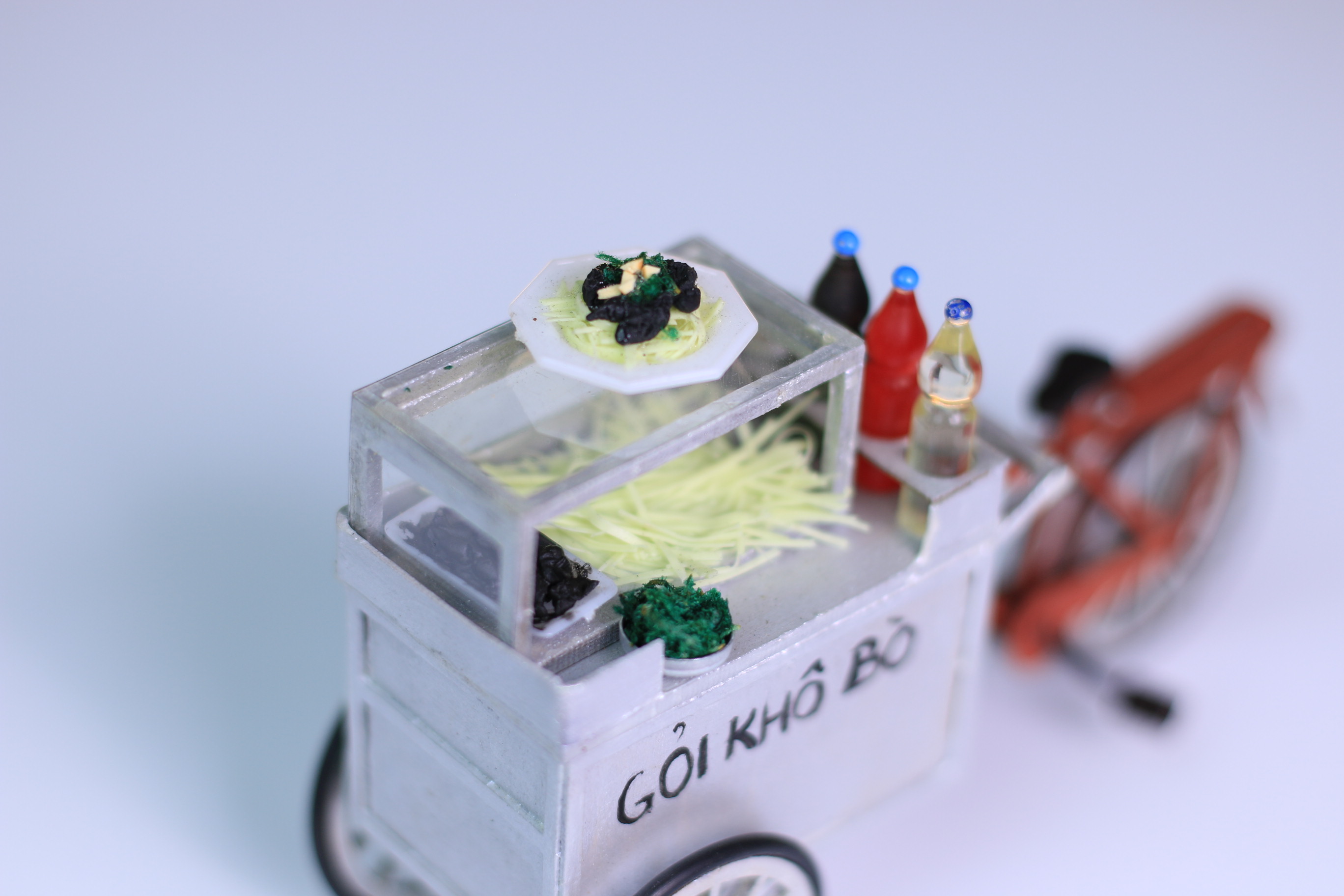 Mô Hình Xe Hàng Rong Thu Nhỏ Bằng Gỗ Ở Sài Gòn - Xe Gỏi Khô Bò - HR15 KHÁCH LƯU Ý - SẢN PHẨM TỰ SƠN VÀ LẮP RÁP - SẢN PHẨM CHƯA BAO GỒM KEO