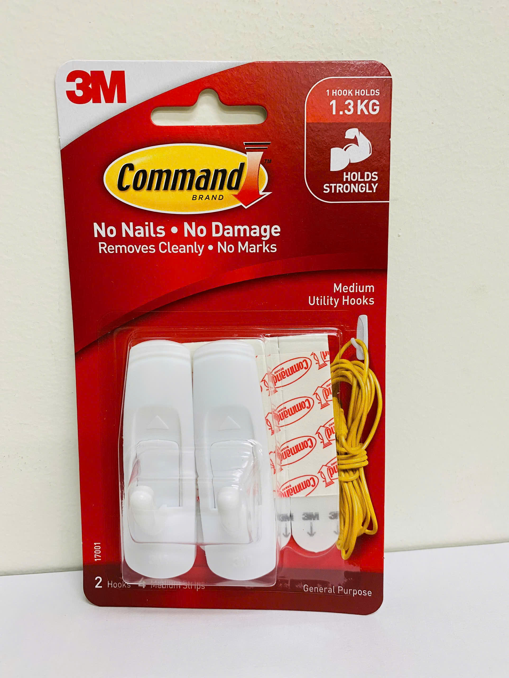 ✨Móc dán tường kiểu vuông 3M COMMAND 17001ANZ, 1.3 kg, 2 cái/vỉ