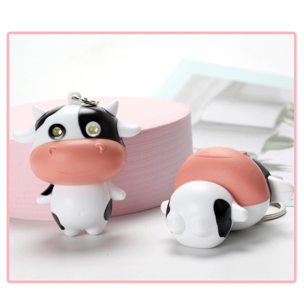 ✨Móc khóa con bò sữa cute mắt có đèn phát sáng, phát ra tiếng kêu ngộ nghĩnh