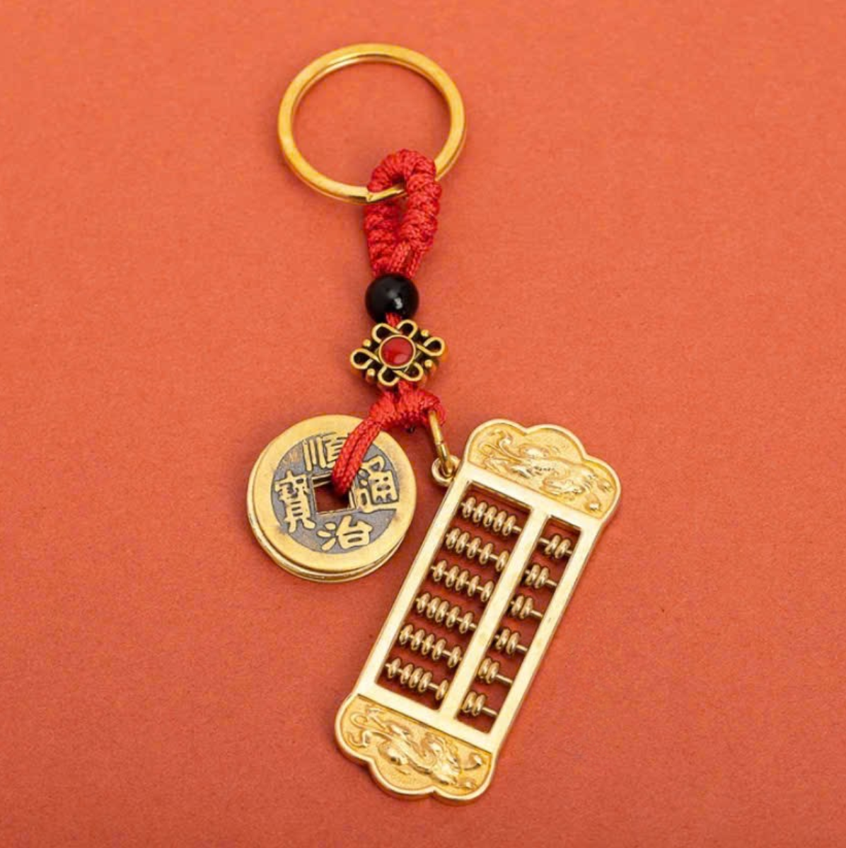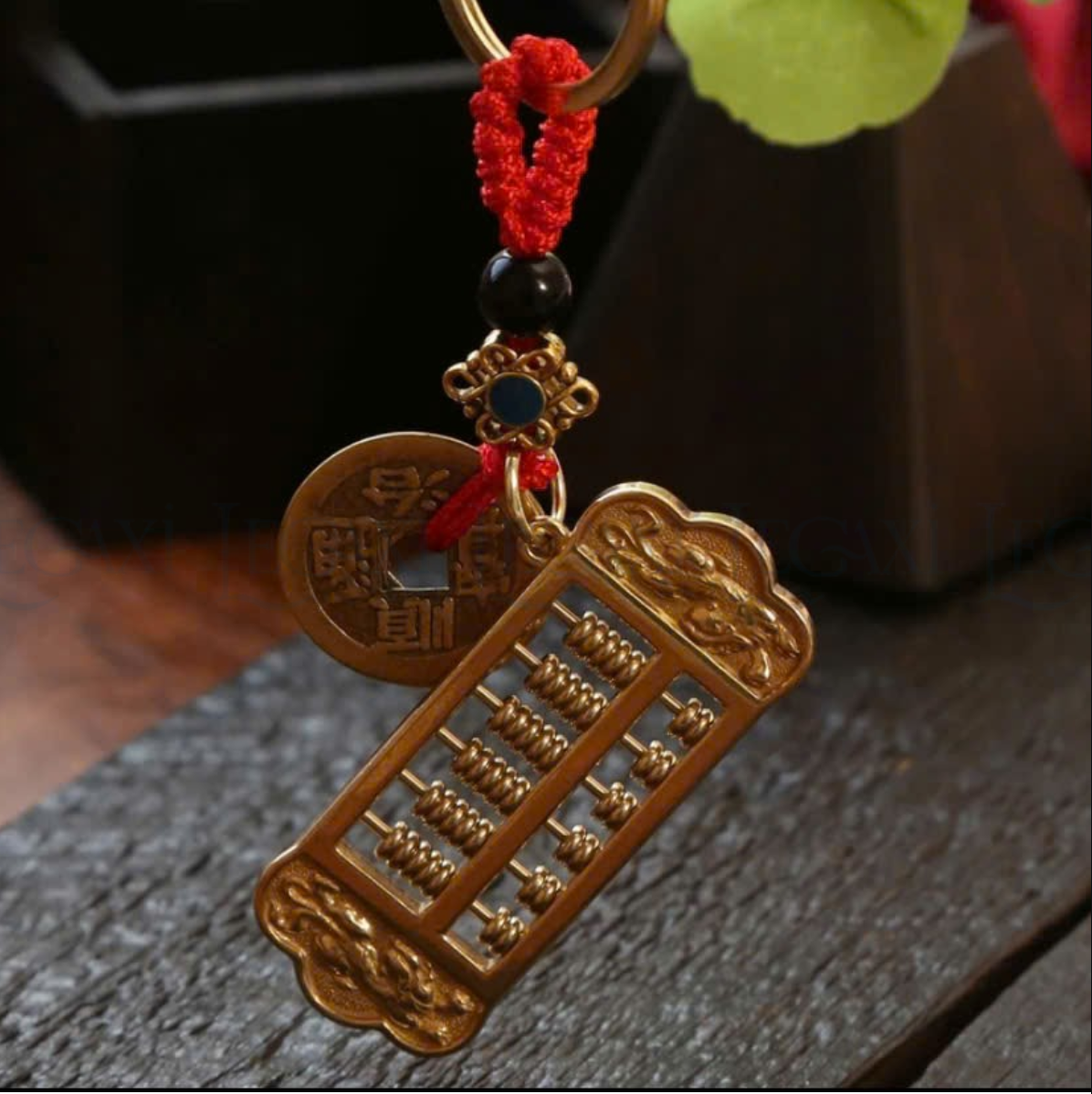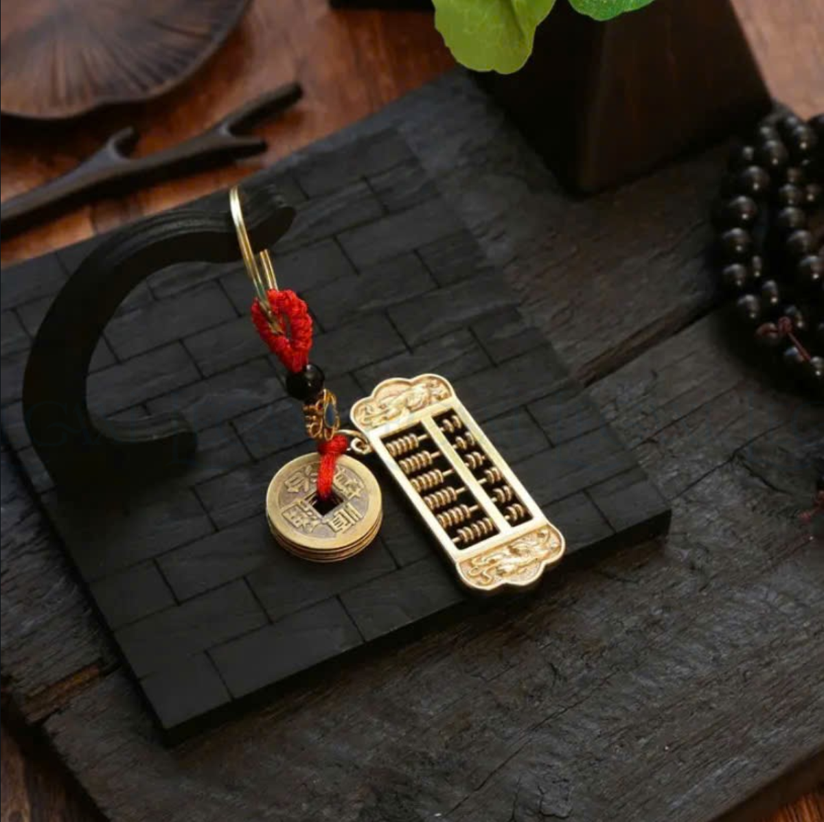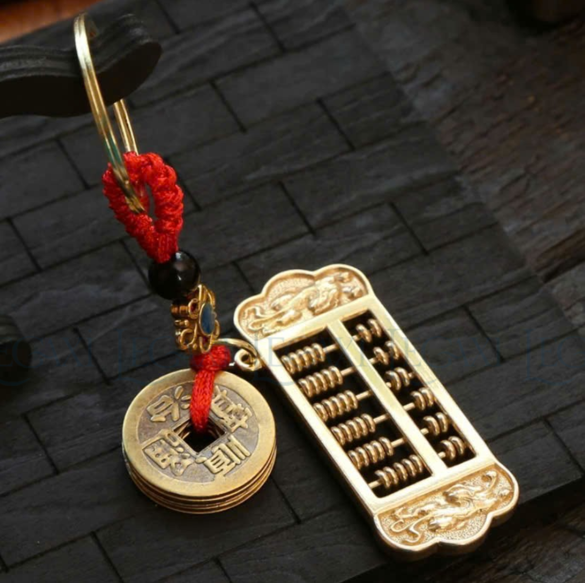 ✨Móc Khóa Đồng Thâu, Đồng Xu Phong Thủy Bàn Tính Di Động, Chạm Khắc Rồng, Phượng, Lân Thu Hút Tài Lộc