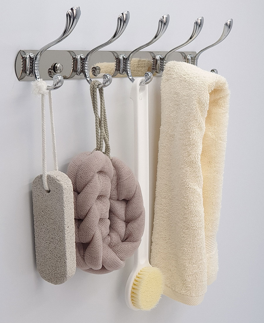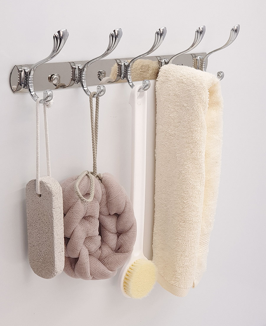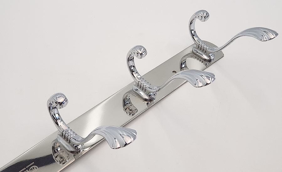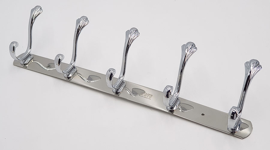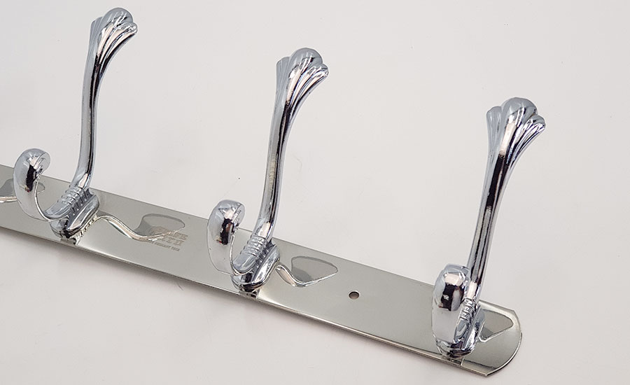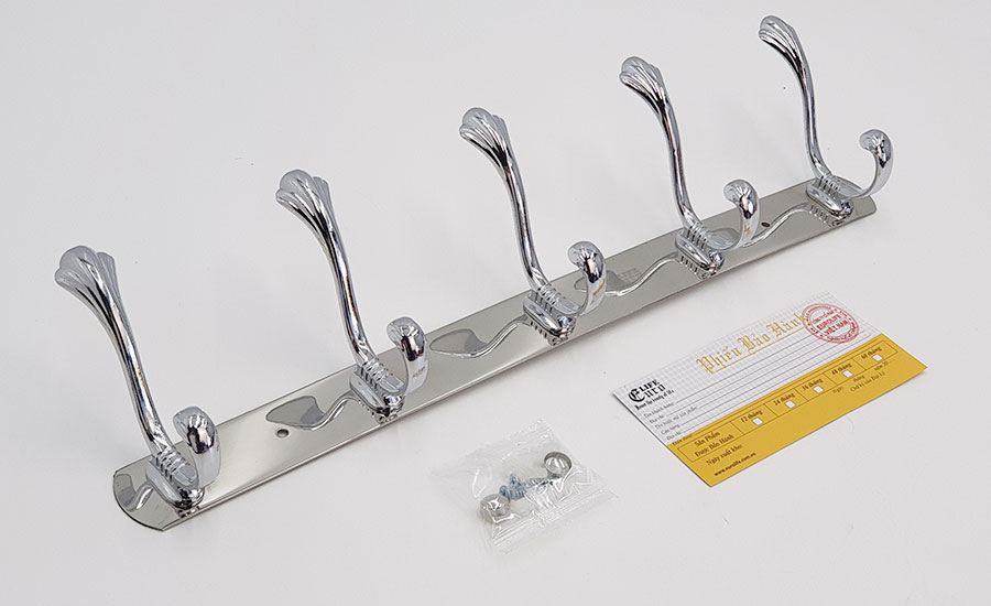 Chấu treo được đúc bằng Metal chắc chắn, thanh đỡ chính bằng Inox mạ Chrome sáng bóng. Mỗi chấu với 2 móc treo, giúp treo tối đa đồ khi cần thiết.