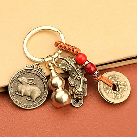 ✨Móc Treo Khóa Xe Đồng Tiền Tết Nguyên Đán 2023 Bát Quái Hình Thỏ Dây Đồng Xu Ngũ Đế Phong Thủy Legaxi