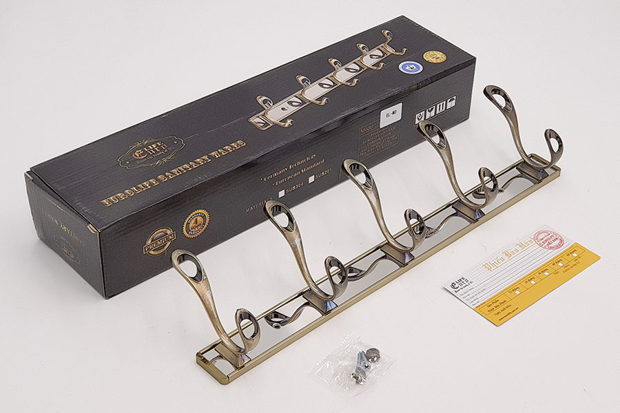 • Chất liệu: Thân chính của móc treo được làm từ Nhôm với lớp mạ vàng Đồng giả cổ, cho sản phẩm sang trọng và tinh tế
