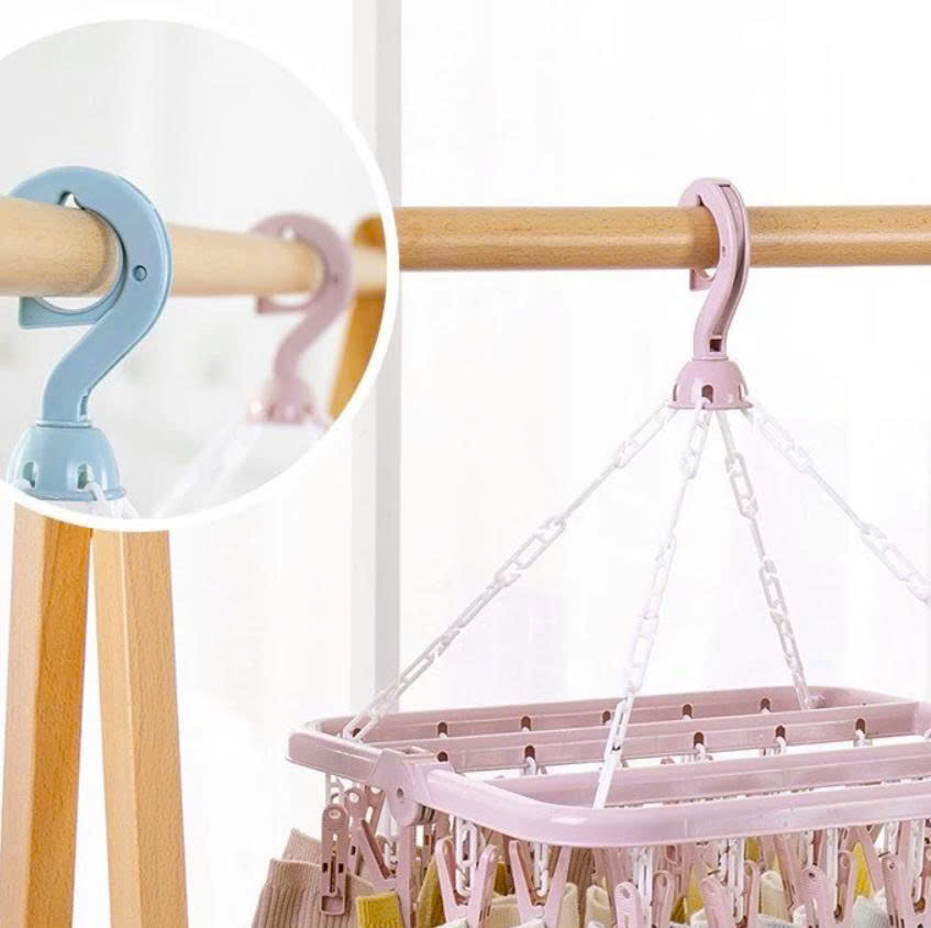 Móc chùm treo quần áo có thể xoay 360 độ, móc giữ cố định không lo bị gió thổi bay.