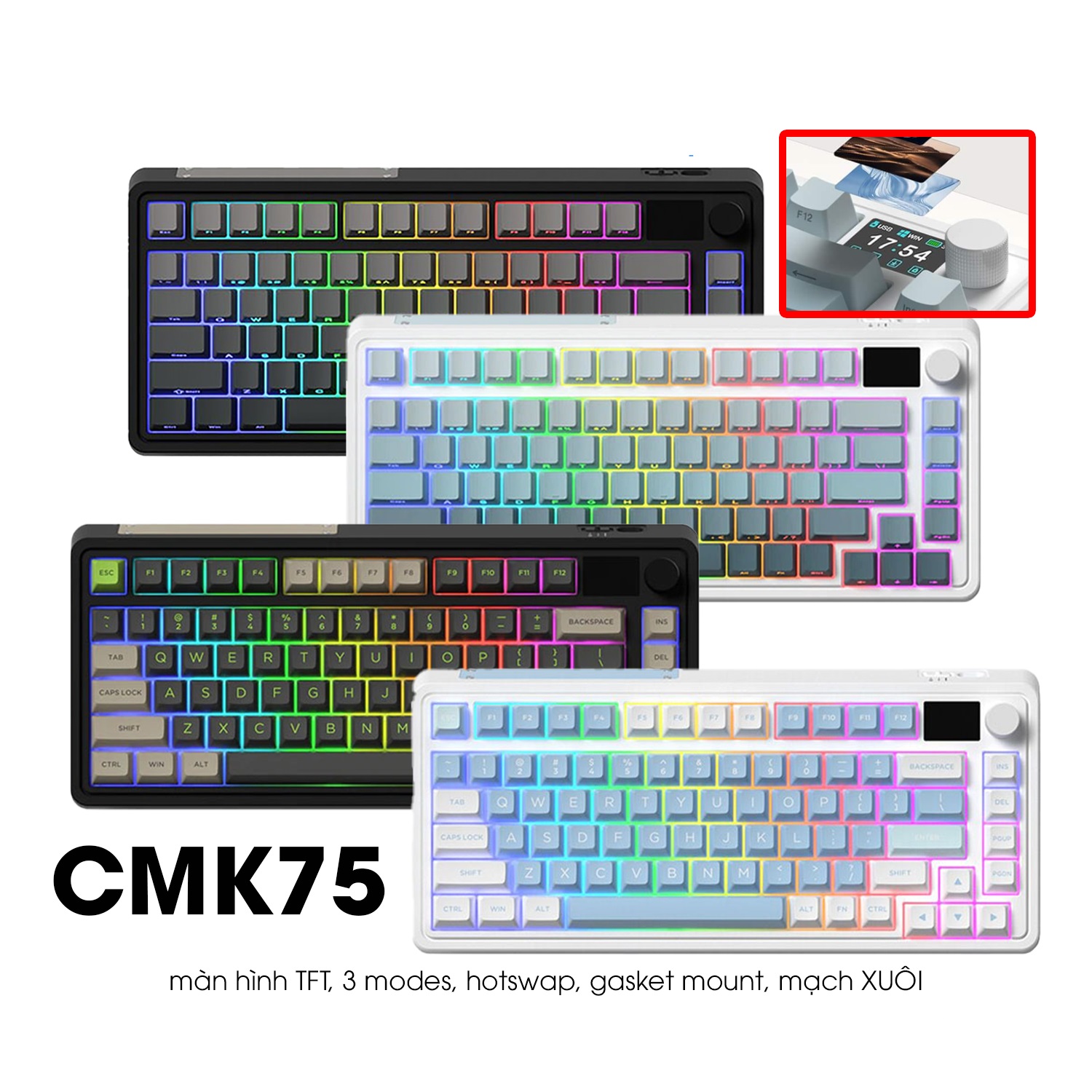 Tham khảo thêm tại: tindocongnghe.vn Bàn Phím Cơ FL·Esports CMK75OEM Hazy Shade (Gradient Grey)/Ultramarine (Gradient Blue)(màn hình, hotswap TFT, RGB, mạch xuôi, Switch Kailh Marshmallow Tactile version)
