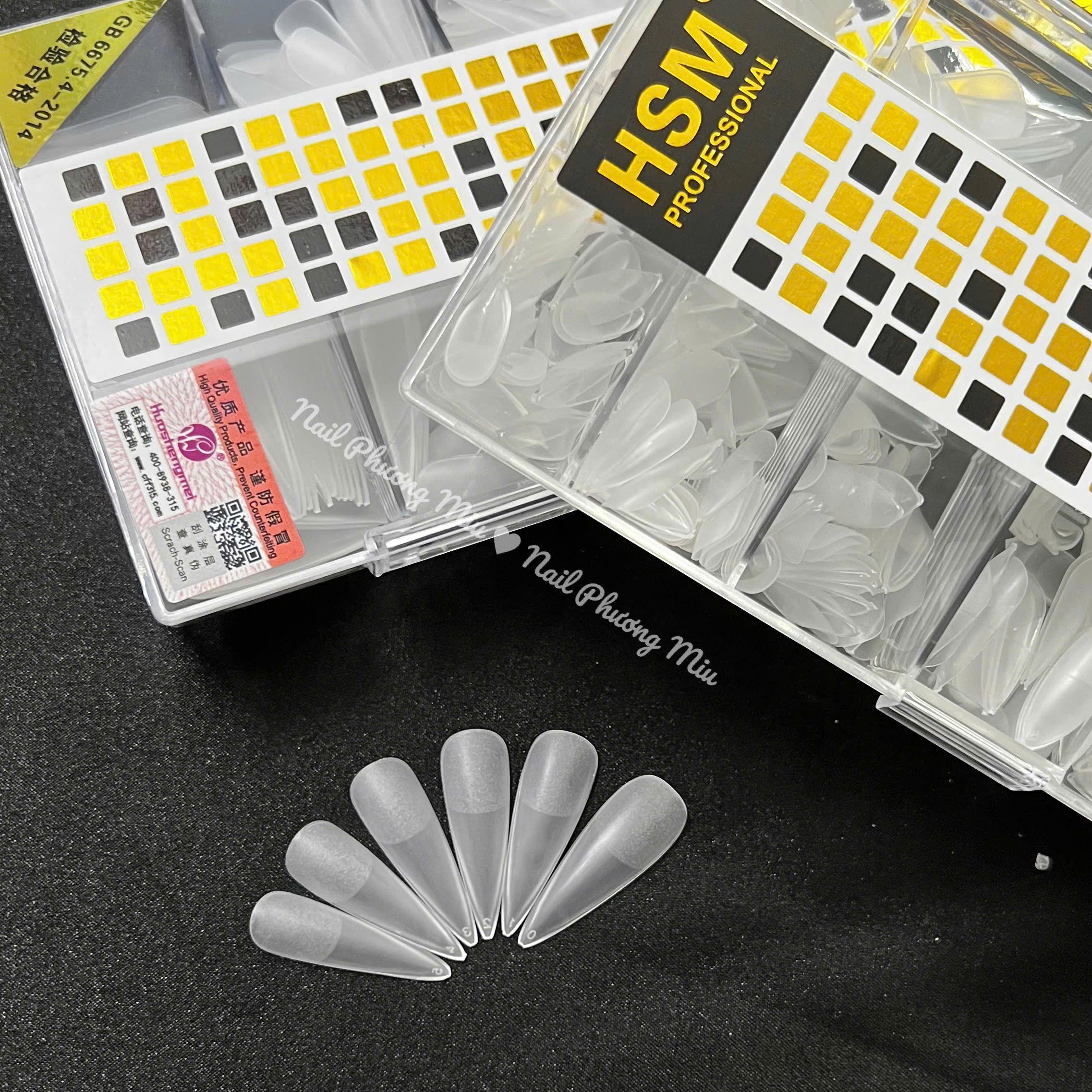 Móng Up Tay HSM Form Nhọn Trong Trơn (Không Nhám) cao cấp Hộp 500 Móng Đủ Size Siêu Mỏng Dẻo Làm Nail, Úp Tệp Móng Chuẩn Form Siêu Xinh Nữ Women Móng up là