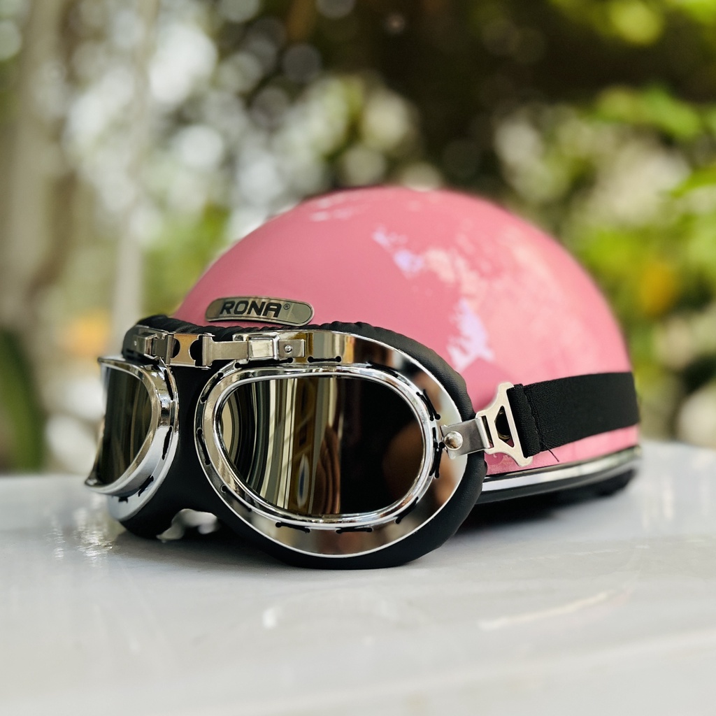 Mũ bảo hiểm nửa đầu freesize Rona hali viền bạc kèm kính phi công bạc Mũ bảo hiểm nửa đầu Rona haly viền bạc kèm kính phi công bạc cho nam và nữ đi xe