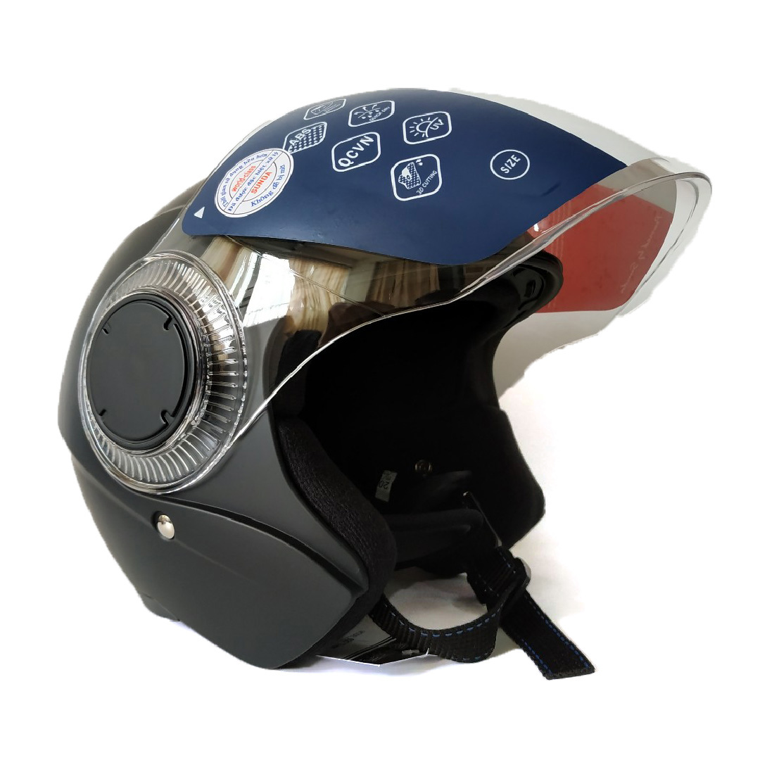 Mũ bảo hiểm nửa đầu có kính Sunda 180B tem là phụ kiện không thể thiếu khi đi xe mô tô, xe máy, mang lại sự an toàn và phong cách thời trang cho người sử