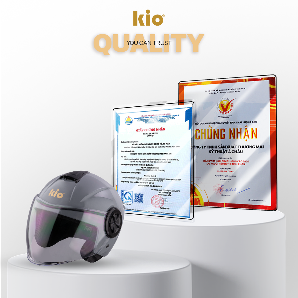 Mũ Bảo Hiểm 3/4 Kio SafeStyle Metro KN06K, Kính Dài Phủ Nano Chống Tia UV, Thông Gió Thoáng Khí. ️An toàn & thời trang trên từng hành trình Kio SafeStyle Metro không chỉ là mũ bảo hiểm, mà là tuyên ngôn phong cách cho người hiện đại, chỉnh chu, sáng tạo lựa chọn lý tưởng cho giới văn phòng và yêu thời trang đường phố. Sản phẩm được nghiên cứu, thiết kế và sản xuất tại nhà máy đạt chuẩn ISO 9001:2015 của Tập đoàn Quốc tế Á Châu, tự hào đạt chứng nhận QCVN 2:2021/BGTVT và được người tiêu dùng bình chọn là Hàng Việt Nam Chất Lượng Cao. ƯU ĐIỂM NỔI BẬT Vỏ ABS nguyên sinh ép nguyên khối: Cứng cáp, bền bỉ, chịu lực lên đến 250J/m và an toàn đạt chuẩn Kio. Xốp mút EPS mật độ cao – 30kg/m³: Dày 2.5–4cm, giúp hấp thụ xung lực và hạn chế tổn thương hiệu quả. Kính chắn dài màu trắng từ polycarbonate cao cấp: Giữ màu sắc tự nhiên, nhìn rõ mọi lúc, dùng được ngày đêm, bảo vệ mắt khỏi gió bụi và côn trùng. Lót nón chất liệu polyester cao cấp: Kháng khuẩn, thoáng khí, thấm hút mồ hôi, giữ đầu luôn khô thoáng suốt cả ngày. Quai đeo bản lớn, khóa thép không gỉ: Đạt chuẩn lực kéo trên 1000N, chắc chắn, bền bỉ và an tâm tuyệt đối khi di chuyển. Thiết kế gọn nhẹ, vừa vặn vóc dáng người Việt: Tối ưu cảm giác thoải mái, phù hợp cho cả nam và nữ dễ phối đồ, giúp bạn thêm phong cách và nổi bật. MÀU SẮC ĐA DẠNG – BẮT TREND Màu mờ (nhám): Đen, Xám Titan. Màu bóng: Trắng xà cừ, Xám xi măng, Hồng Sữa P169C. HƯỚNG DẪN CHỌN SIZE CHUẨN Dùng thước dây đo vòng quanh đầu, cách lông mày khoảng 2cm, vòng ra sau gáy – quấn sát để có số đo chính xác. Size M: 55–56cm Size L: 57–58cm Size XL: 59–60cm BẢO QUẢN & VỆ SINH NÓN Vệ sinh vỏ bằng khăn mềm ẩm, không dùng chất tẩy mạnh Lót tháo rời nên giặt tay bằng xà phòng nhẹ Tránh để nón dưới nắng gắt hoặc trong cốp xe khi trời nóng Thay nón sau 2–3 năm hoặc ngay khi có va chạm mạnh CHÍNH SÁCH BÁN HÀNG Bảo hành 12 tháng lỗi kỹ thuật từ nhà sản xuất Đổi mới 1 đổi 1 trong 15 ngày nếu sản phẩm lỗi, sai mẫu, sai size Cam kết 100% hàng chính hãƞg từ Kio - có tem chống giả & phiếu bảo hành Hãy để Kio SafeStyle Metro KN06K đồng hành cùng bạn vừa bảo vệ bạn an toàn, vừa giúp bạn thể hiện cá tính riêng mỗi ngày. Cảm ơn bạn đã quan tâm đến sản phẩm Mũ Bảo Hiểm 3/4 Kio SafeStyle Metro KN06K, Kính Dài Phủ Nano Chống Tia UV, Thông Gió Thoáng Khí.