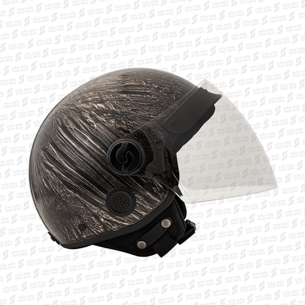 THIẾT KẾ THÔNG MINH - Phong cách thiết kế: mũ kiểu 3/4 kèm kính dài, mũ được thiết kế dáng tròn, đi kèm 2 miếng ốp má, giúp tăng thêm hiệu quả bao phủ, bảo
