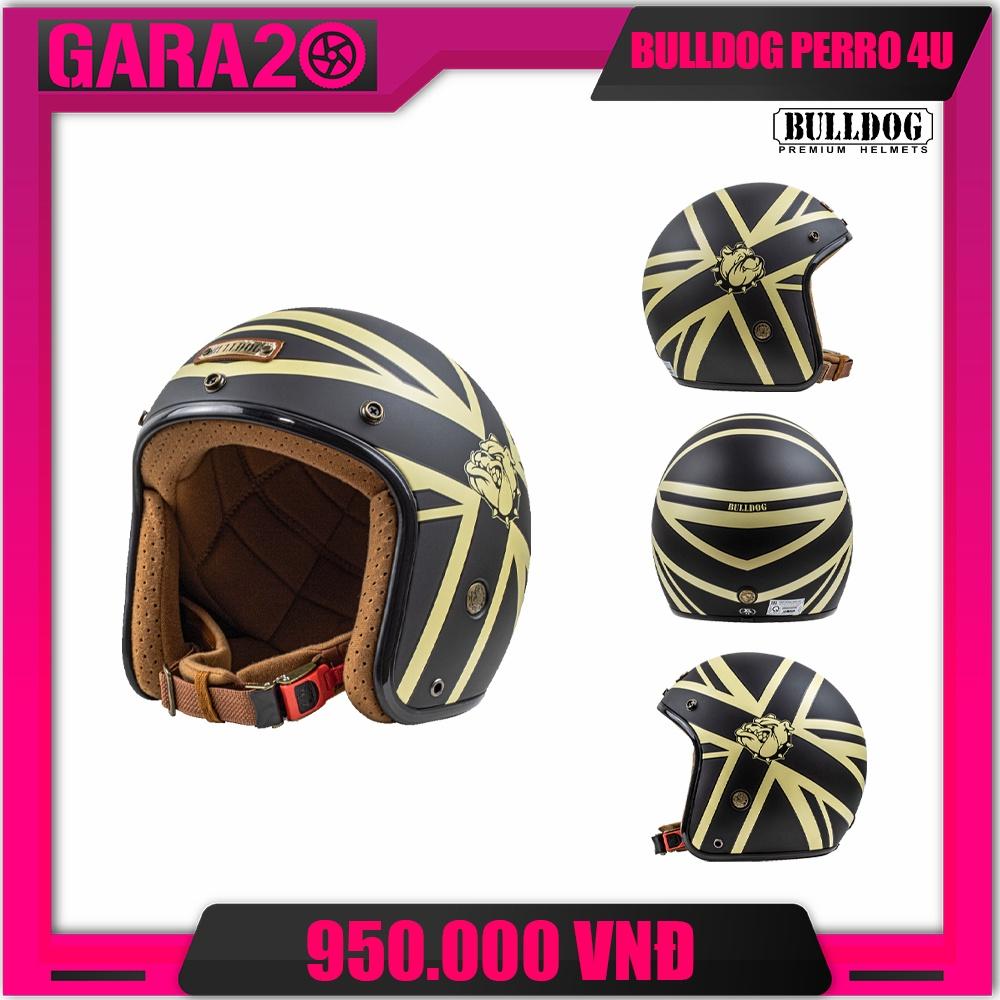 ✨MŨ BẢO HIỂM CỔ ĐIỂN 3/4 BULLDOG PERRO 4U EMO- GARA 20