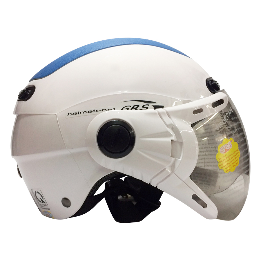 - Mũ Bảo Hiểm GRS A102K - Trắng Line Xanh là loại mũ bảo hiểm nửa đầu cao cấp dành cho người đầu nhỏ hoặc trẻ em trung học phổ thông - Mũ có thiết