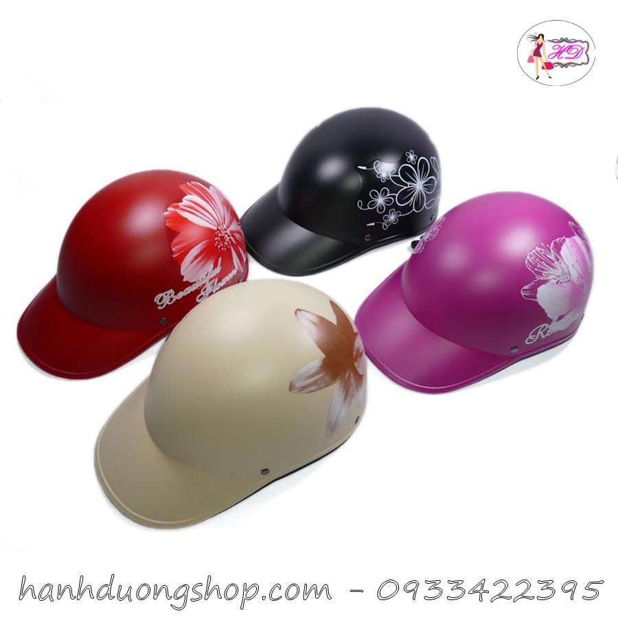 [ Hoa in ngẫu nhiêu ] Mũ bảo hiểm nữ đẹp in họa tiết bông hoa nón bảo hiểm có khoét đuôi dễ dàng buột tóc cao làm đủ kiểu