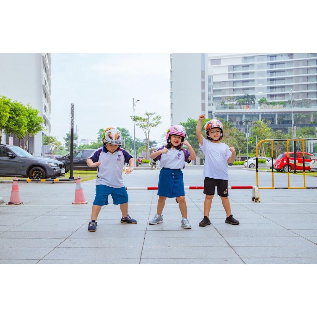 Mũ bảo hiểm fullface LS2 OF602 FUNNY đi đường dài cùng ba mẹ. Đây là những sản phẩm đầu tiên trên thị trường Việt Nam dành cho trẻ được sản xuất theo tiêu chuẩn an toàn Châu Âu ECE-2205.