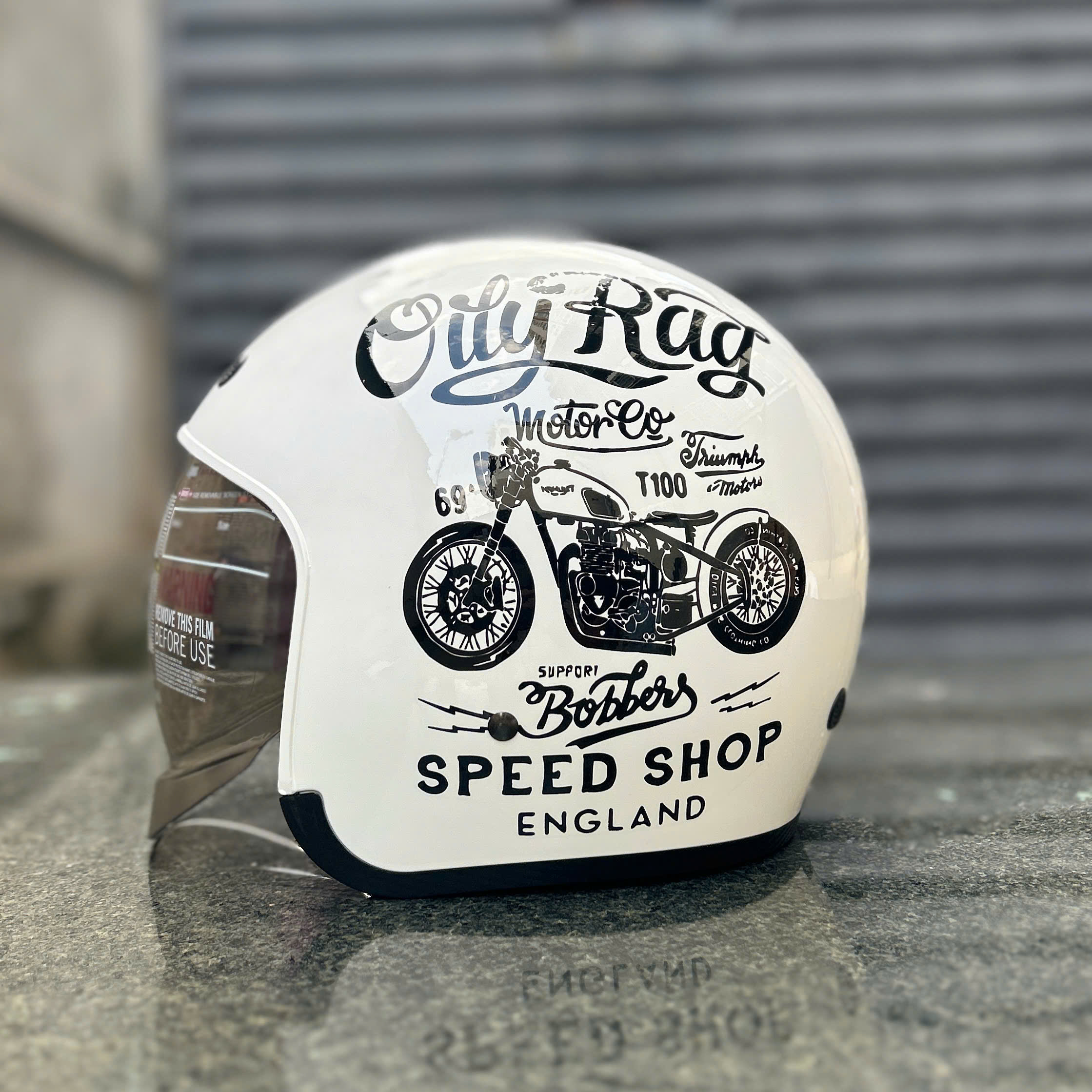 Mũ bảo hiểm 3/4 Bulldog Heli Fiberglass Mũ bảo hiểm 3/4 Bulldog Heli Fiberglass đậm chất cổ điển và được trau chuốt tỉ mỉ đến từng chi tiết, đặc biệt chất liệu sợi thủy tinh