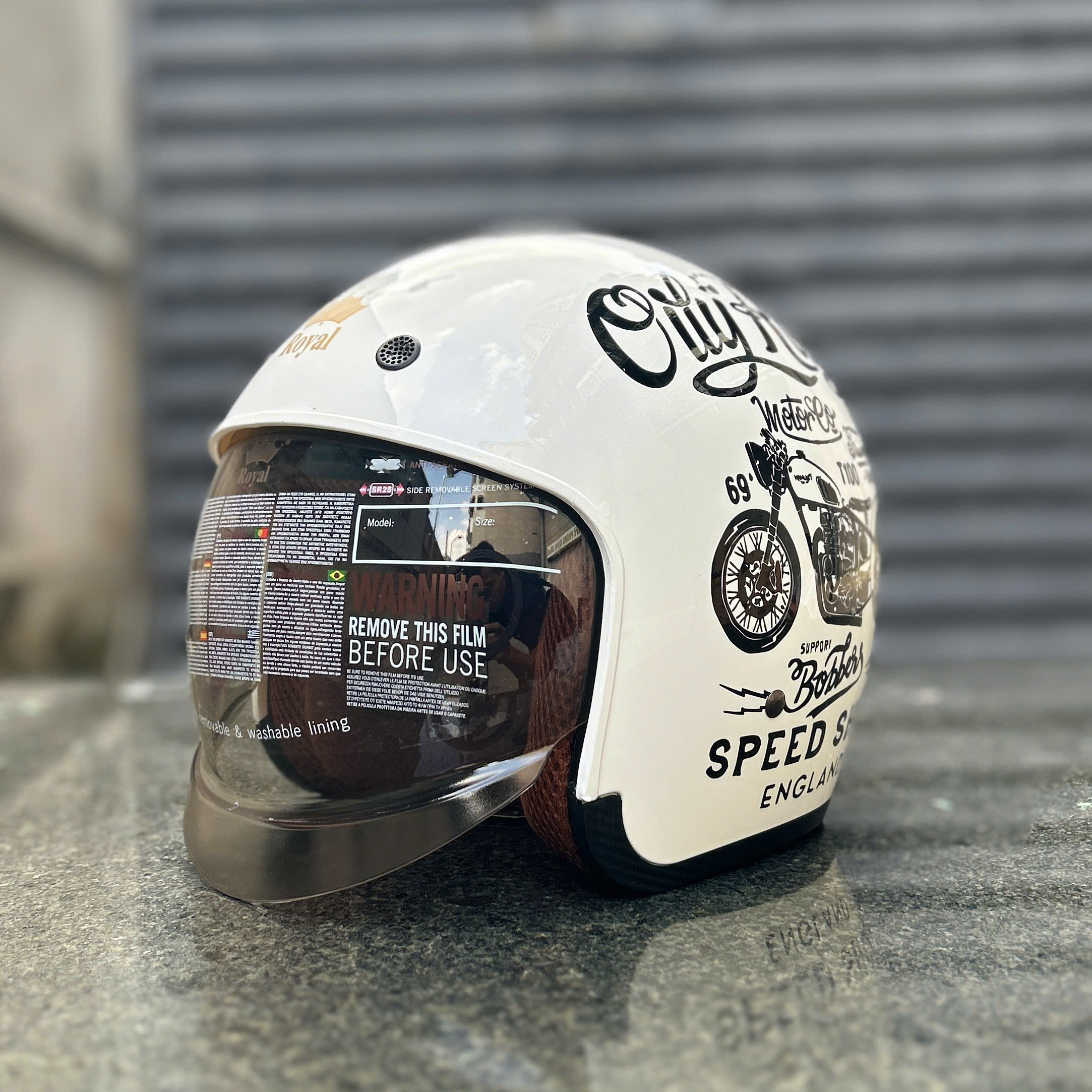 Thông tin chi tiết: Thương hiệu: Royal (Mafa VN sản xuất) Model: M139 Luxury Loại: 3/4 đầu, có kính âm giảm UV Kính: Kính âm nhỏ màu trà khói, chống tia UV, bụi, gió. Mái