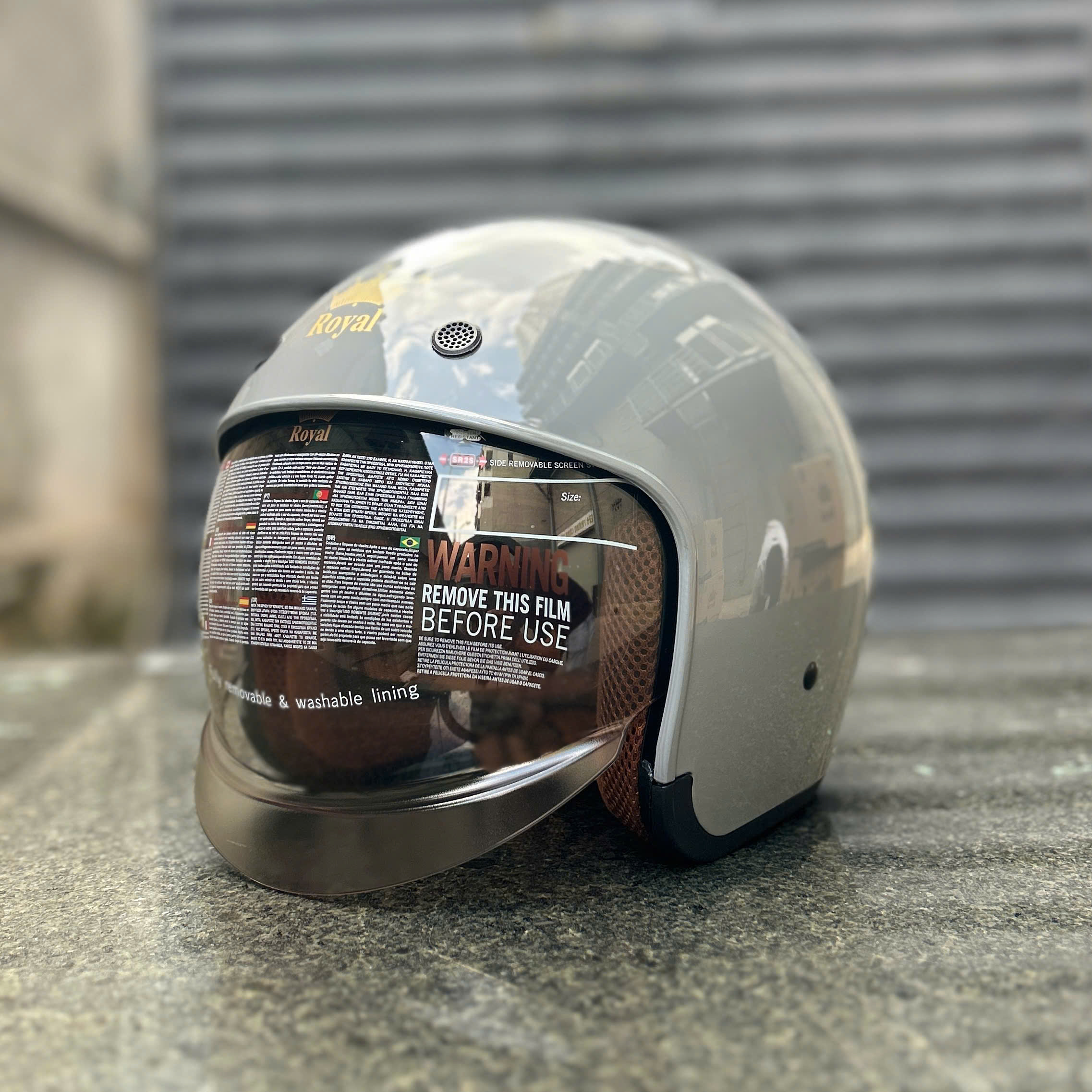 - Kính thẳng có 3 nút đồng gắn nón bảo hiểm - Có thể kéo mở lên xuống - Gắn chắc với các dòng nón Royal, Asia, Bulldog, Andes - Mặt kính đồng nhất, tầm