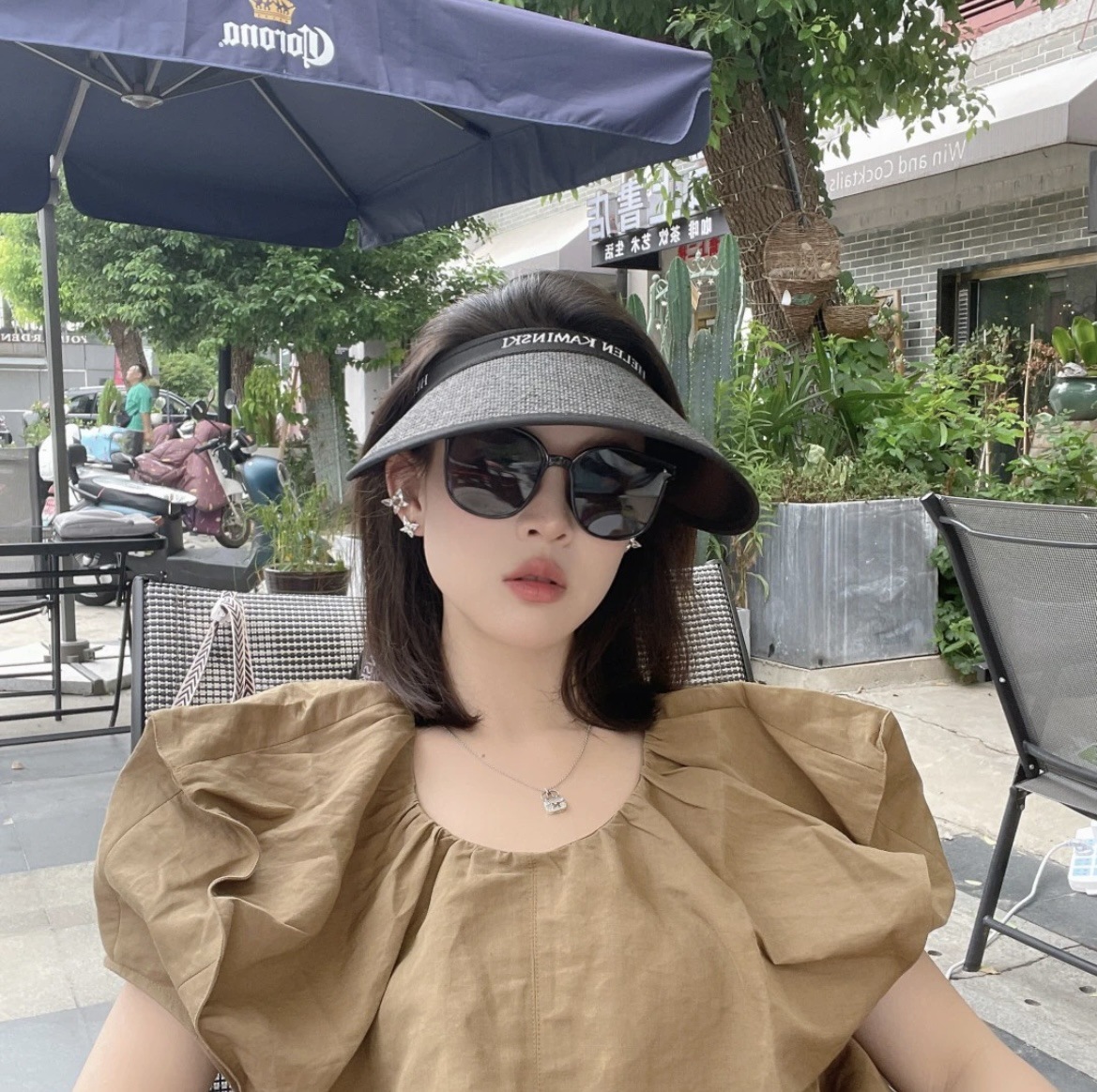Mũ nón visor nửa đầu đi biển rộng vành tròn đẹp cho nữ LÀGU Khăn Phụ Kiện - NC506
