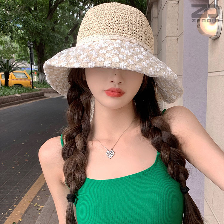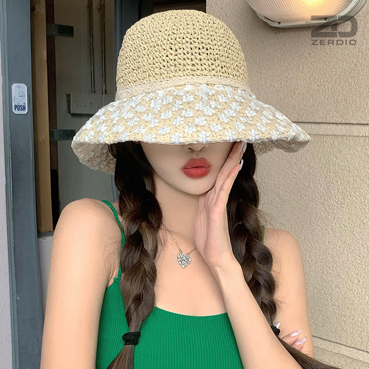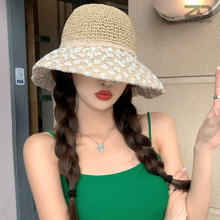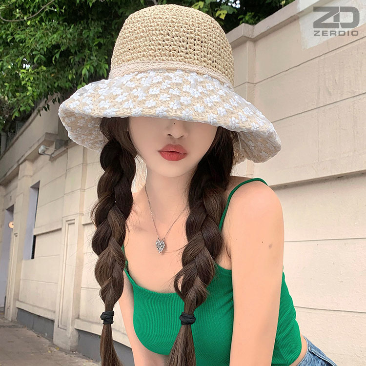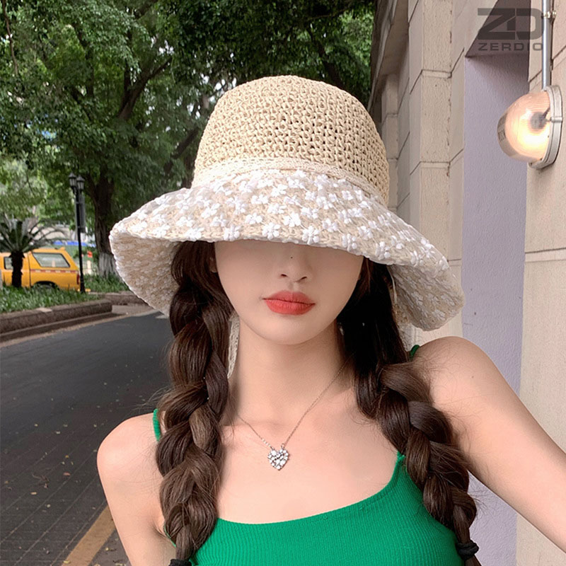 Mũ cói rơm vành phẳng nữ mùa hè phiên bản Hàn Quốc chống nắng UV cho kỳ nghỉ Nón đi biển Paris thời trang hàng đầu Pháp Chất liệu cói
