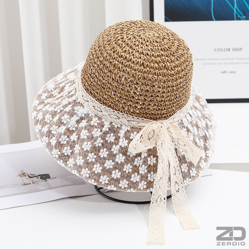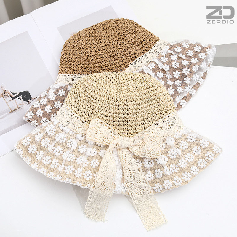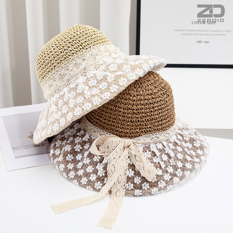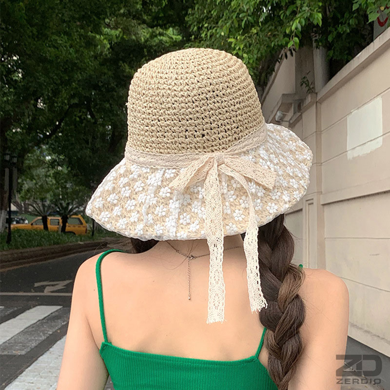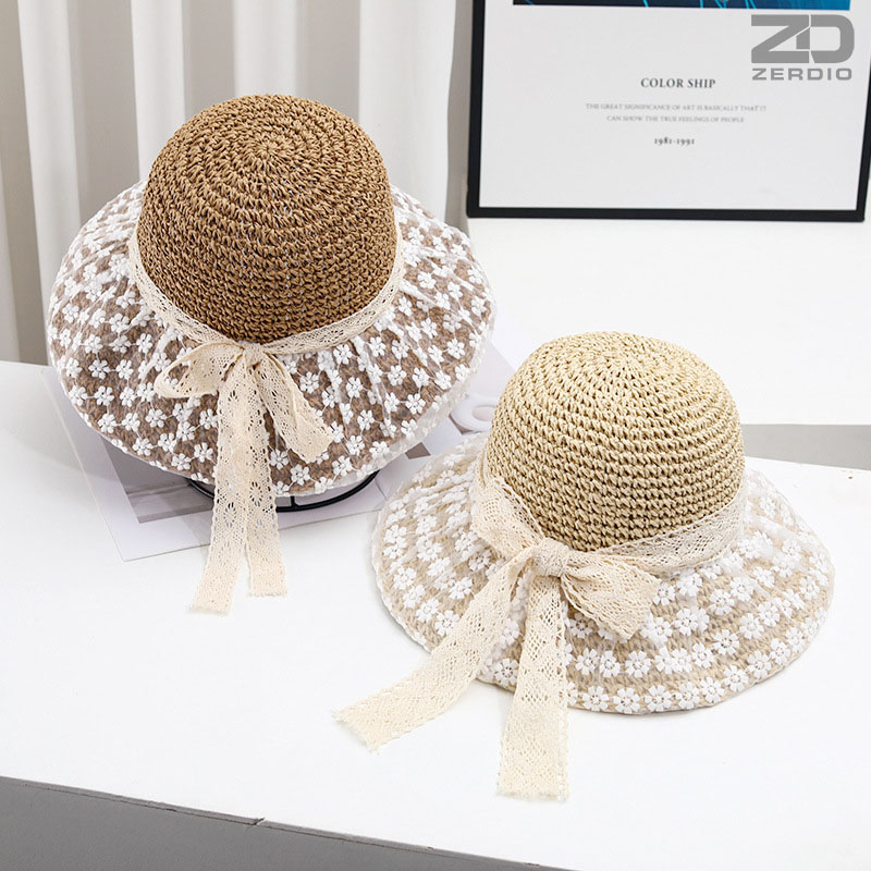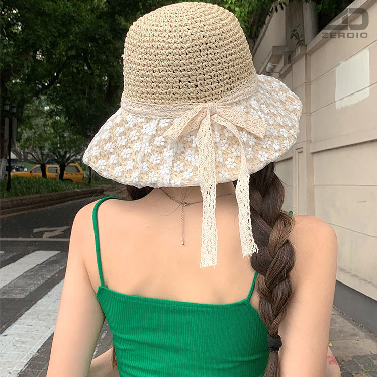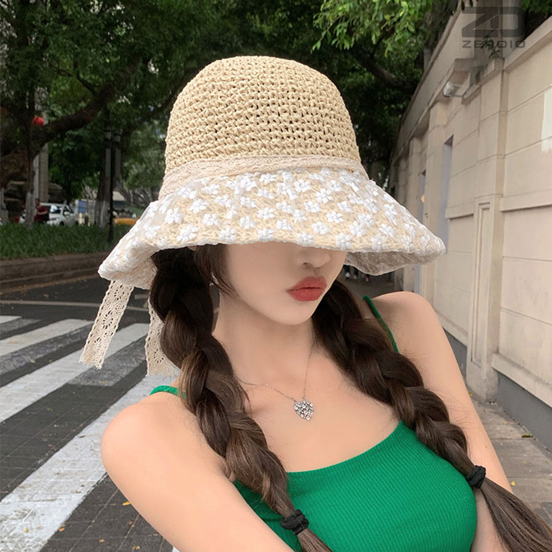 ✨Mũ Cói Đi Biển Nữ Họa Tiết Ren, Nón Rơm Phong Cách Hàn Quốc MCDBN018