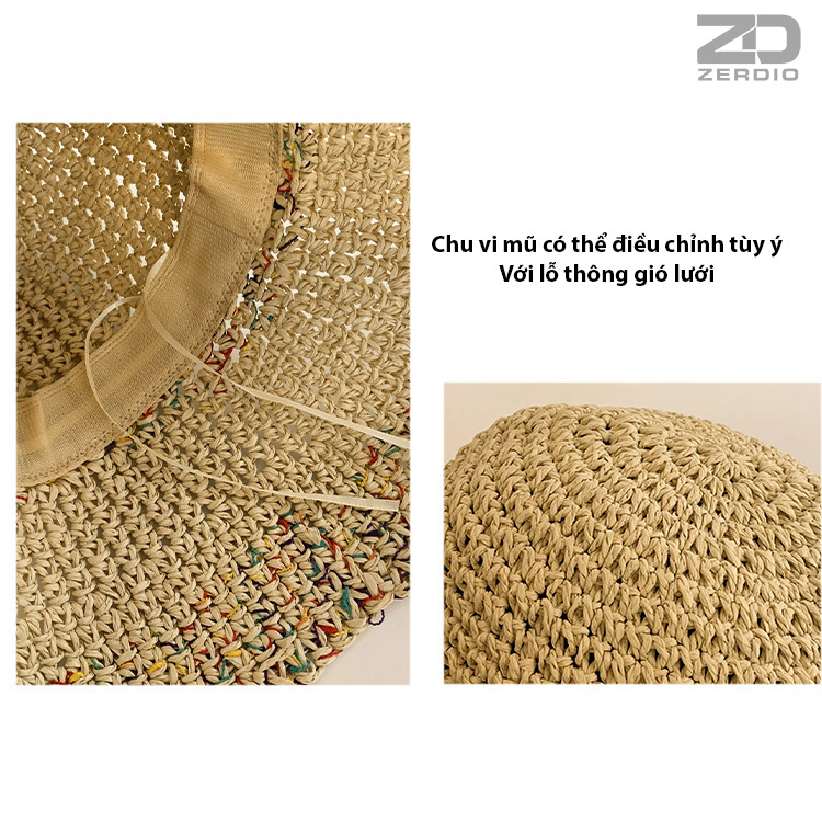 Nón mũ rộng vành nhỏ chất liệu cói mũ rộng vành đi biển phối đai vân sọc Zebra mẫu mới thời trang Hàn Quốc Kích thước vành rộng 5cm Chất liệu cói thoáng mát Nón