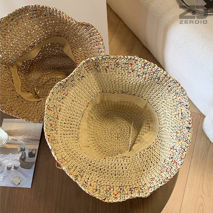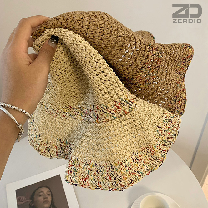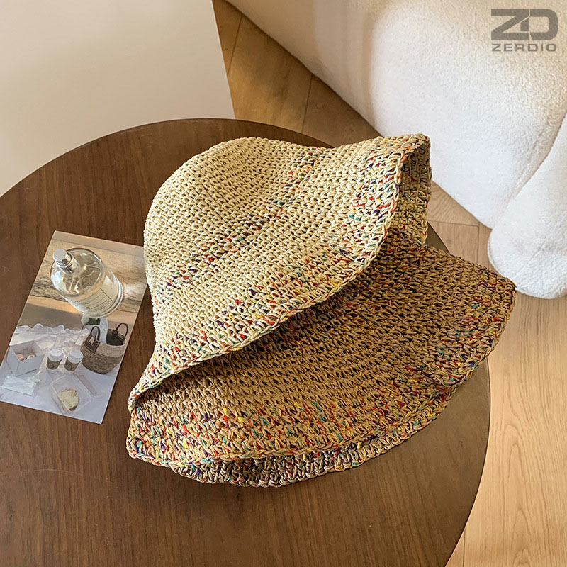 Mũ cói rơm vành phẳng nữ mùa hè phiên bản Hàn Quốc chống nắng UV cho kỳ nghỉ Nón đi biển Paris thời trang hàng đầu Pháp Chất liệu cói