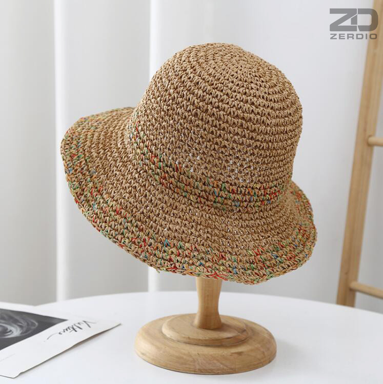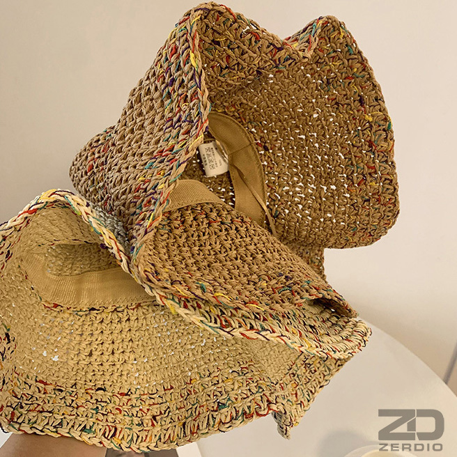 Nón mũ Nữ cói Dệt Móc Tay thoáng khí Có Thể Gập Đi Biển