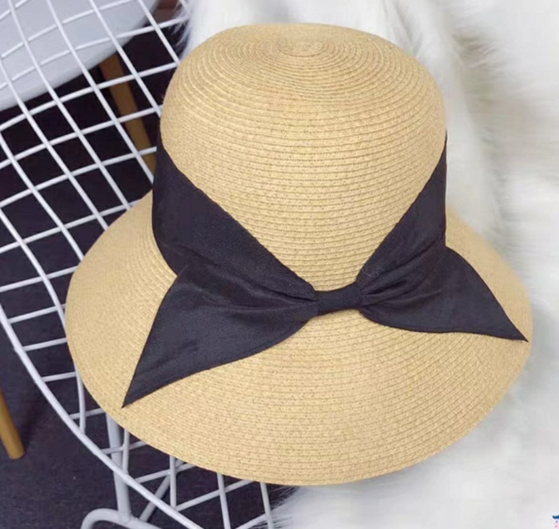 Mũ cói rơm vành phẳng nữ mùa hè phiên bản Hàn Quốc chống nắng UV cho kỳ nghỉ Nón đi biển Paris thời trang hàng đầu Pháp Chất liệu cói