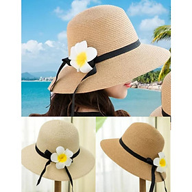 Mũ Rộng Vành Nón Cói Đi Biển Đan Có Hoa Và Nơ Thêm Dịu Dàng Chống Tia UV